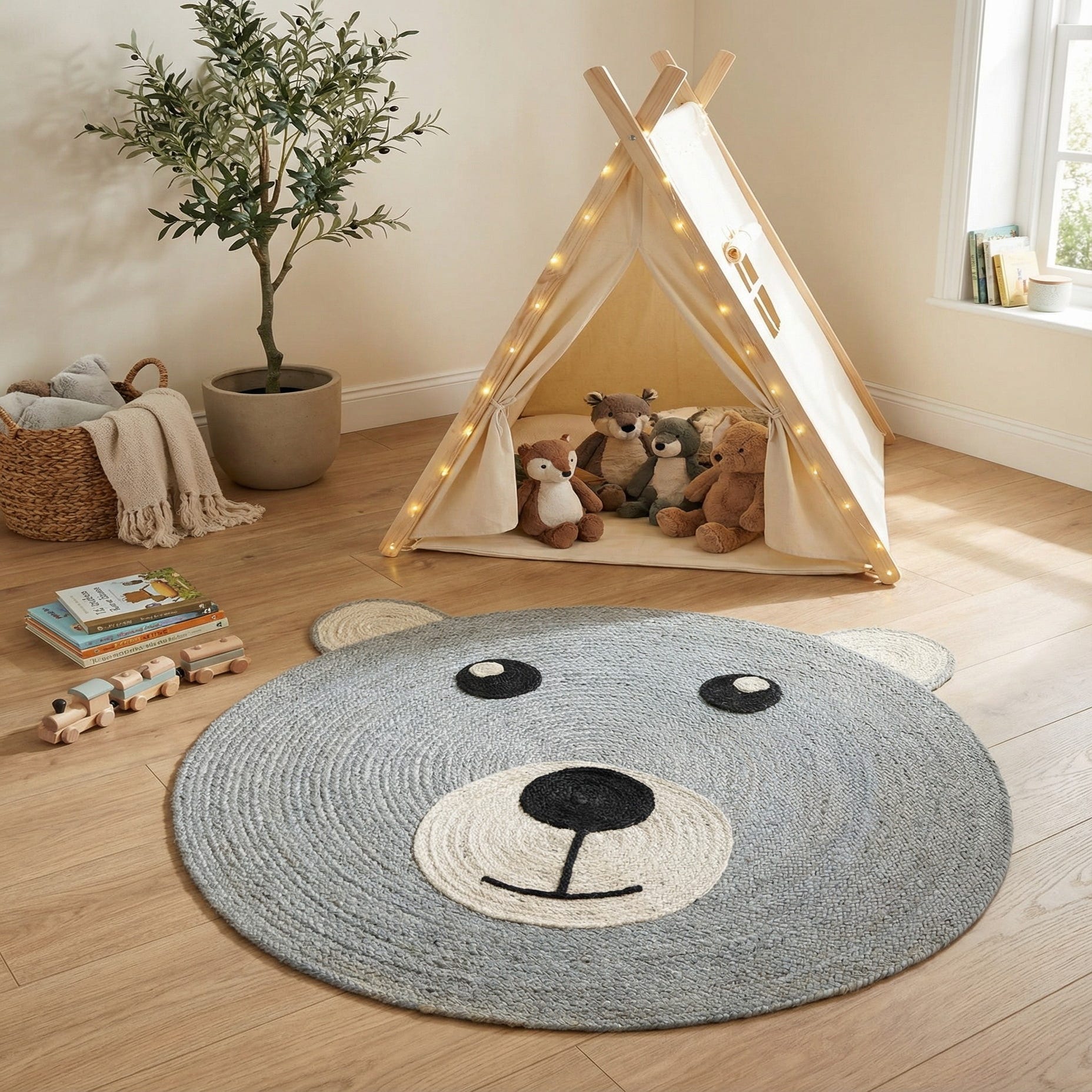 4' 1 x 4' 1 Hand Braided Kids Braided Jute Round Rug
