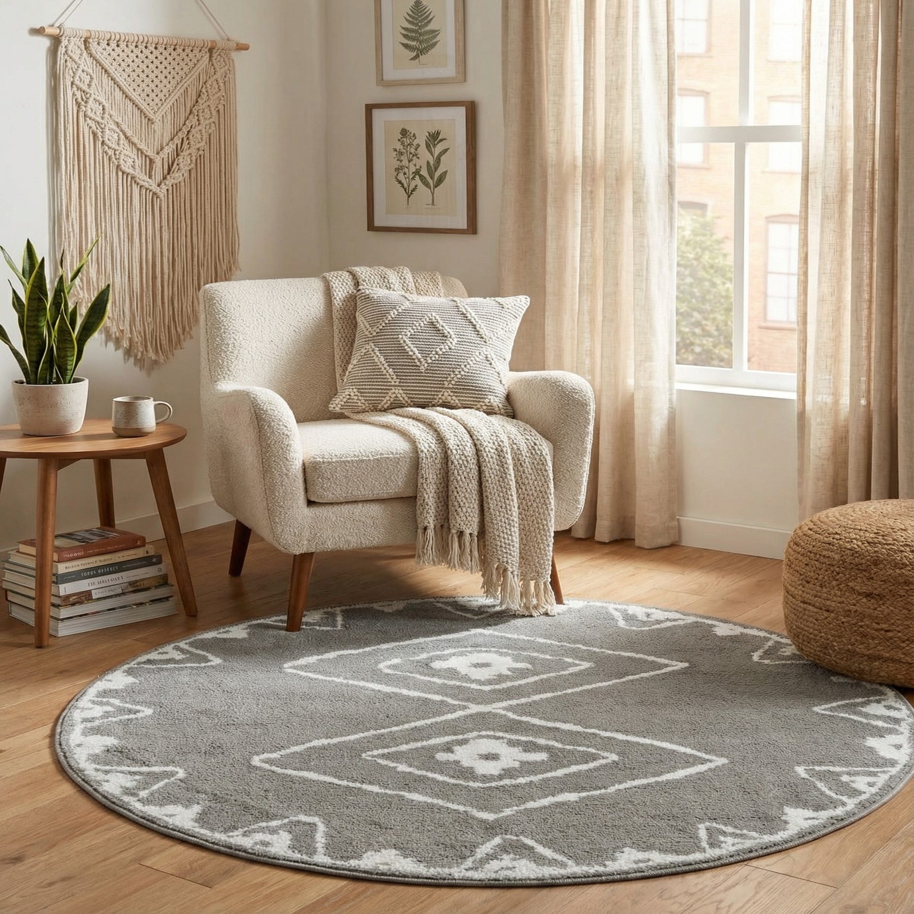 Primary color is Gray. Colors in this rug include: Gray, Ivory.