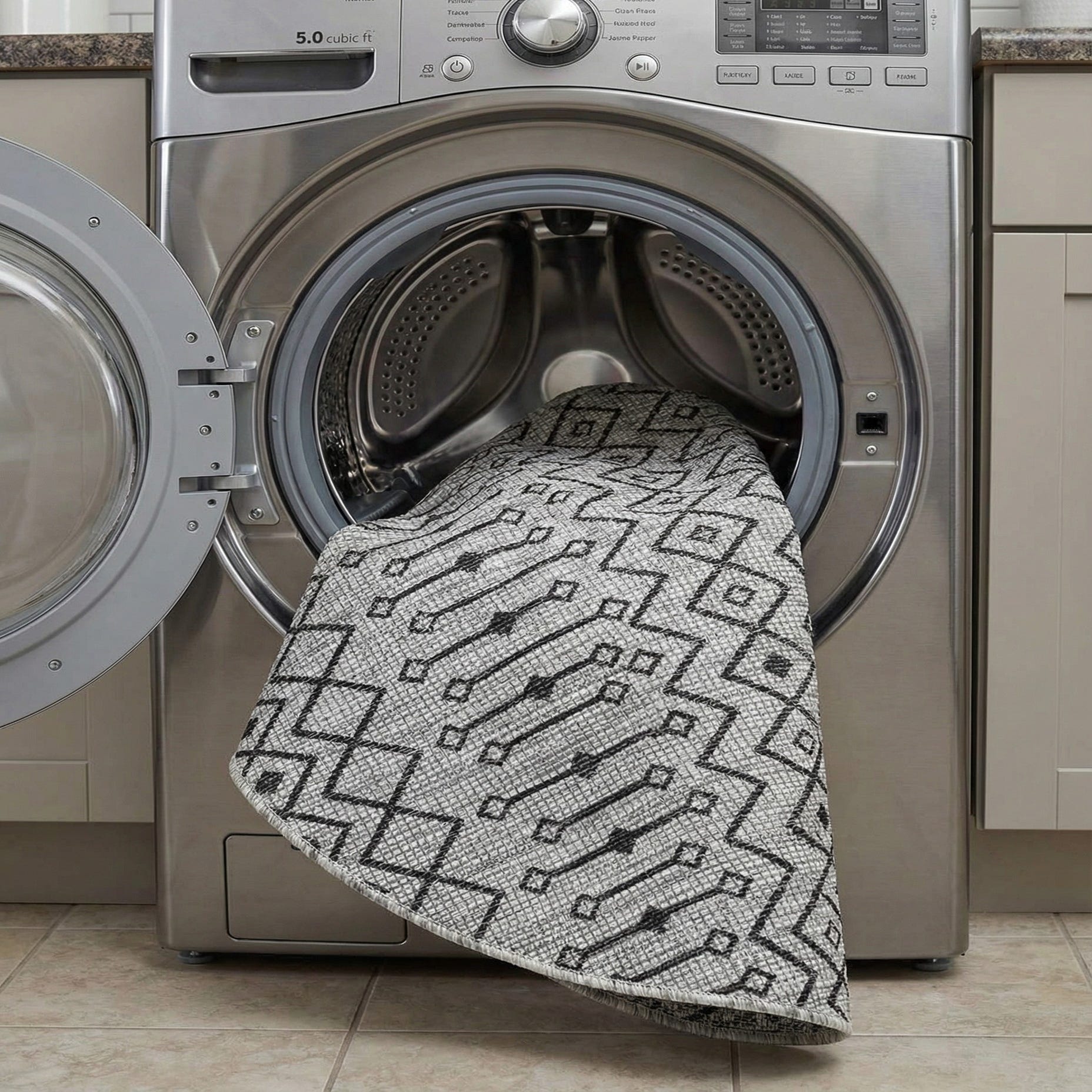 Primary color is Gray. Colors in this rug include: Gray, Black.