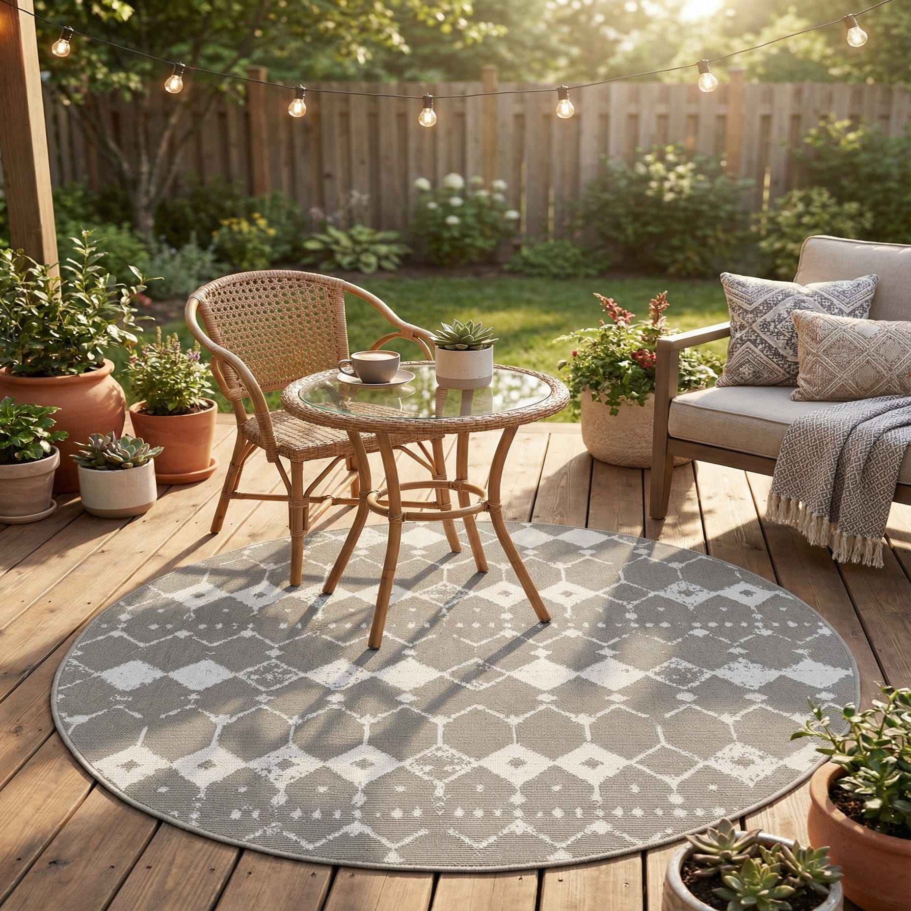 4' x 4' Washable Trellis Indoor / Outdoor Round Rug