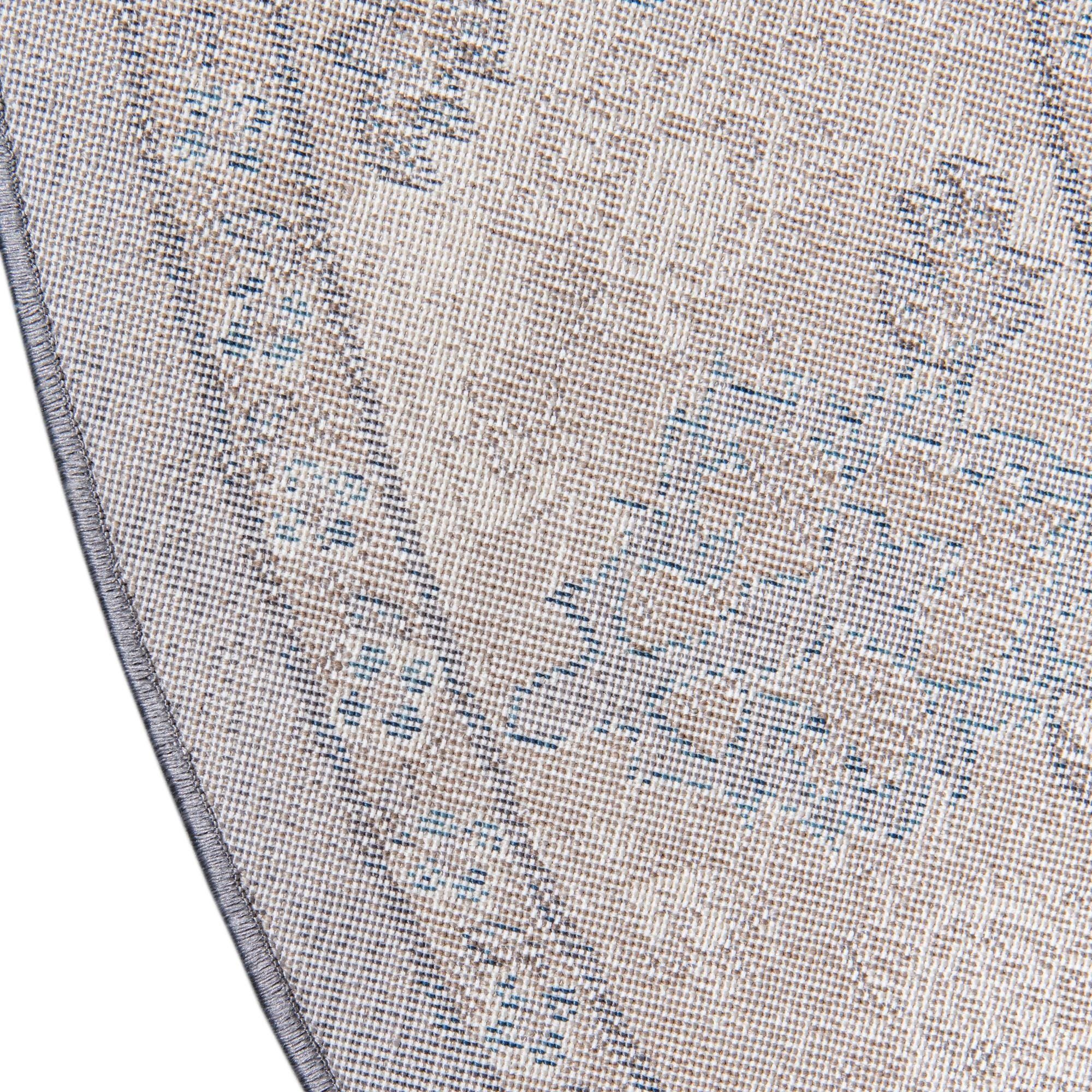Primary color is Gray. Colors in this rug include: Gray, Light Blue, Ivory.