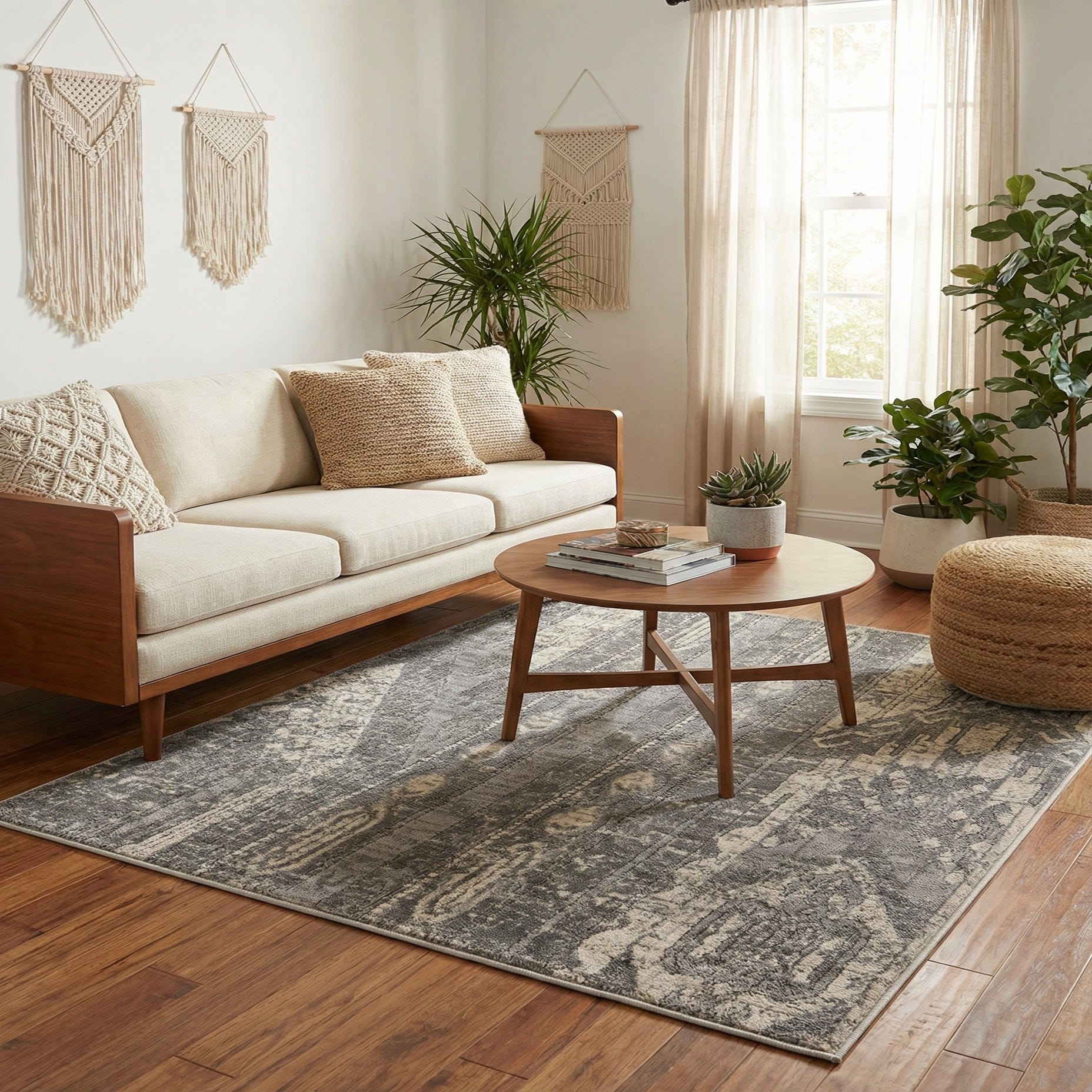 Primary color is Gray. Colors in this rug include: Gray, Beige, Cream.