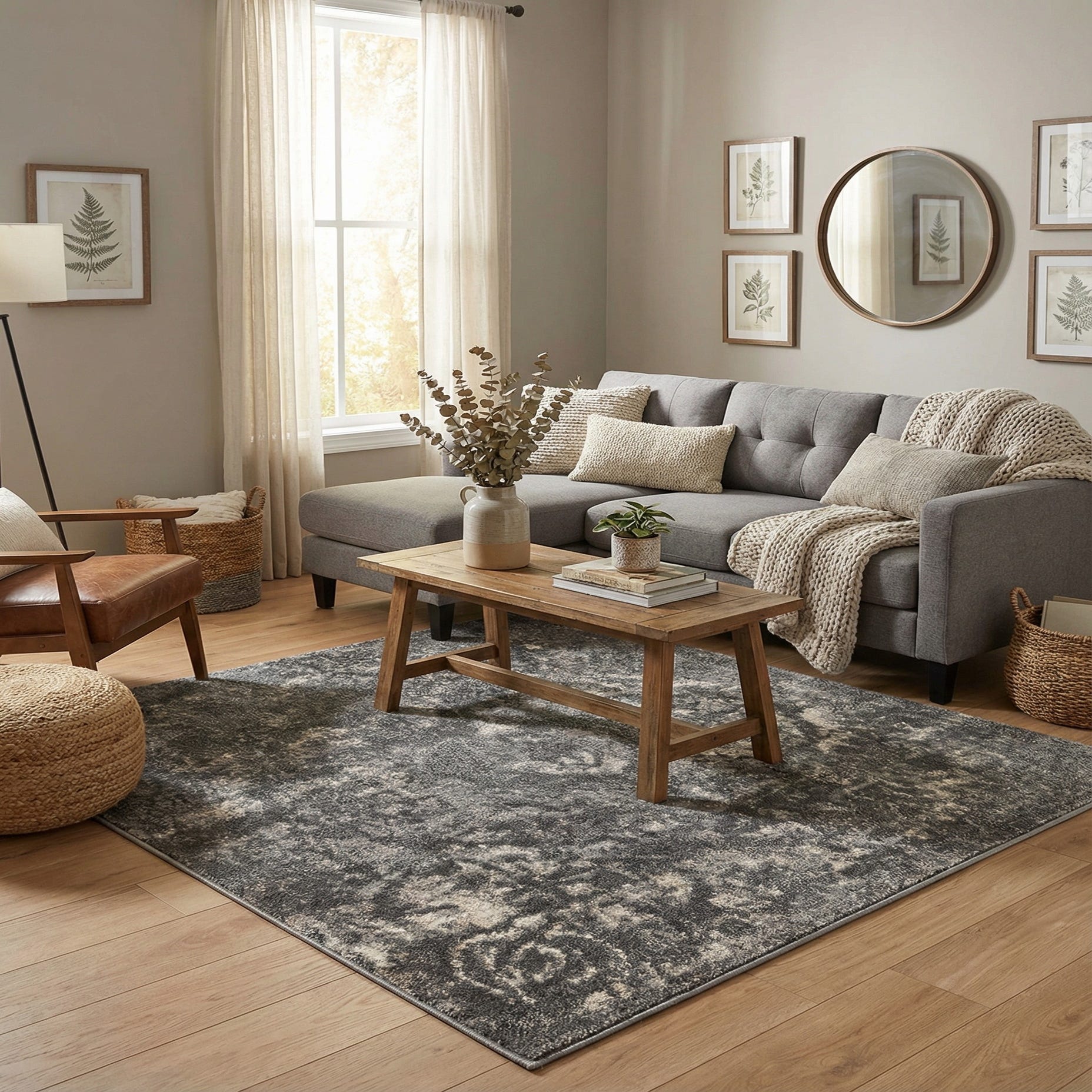 Primary color is Gray. Colors in this rug include: Gray, Ivory.