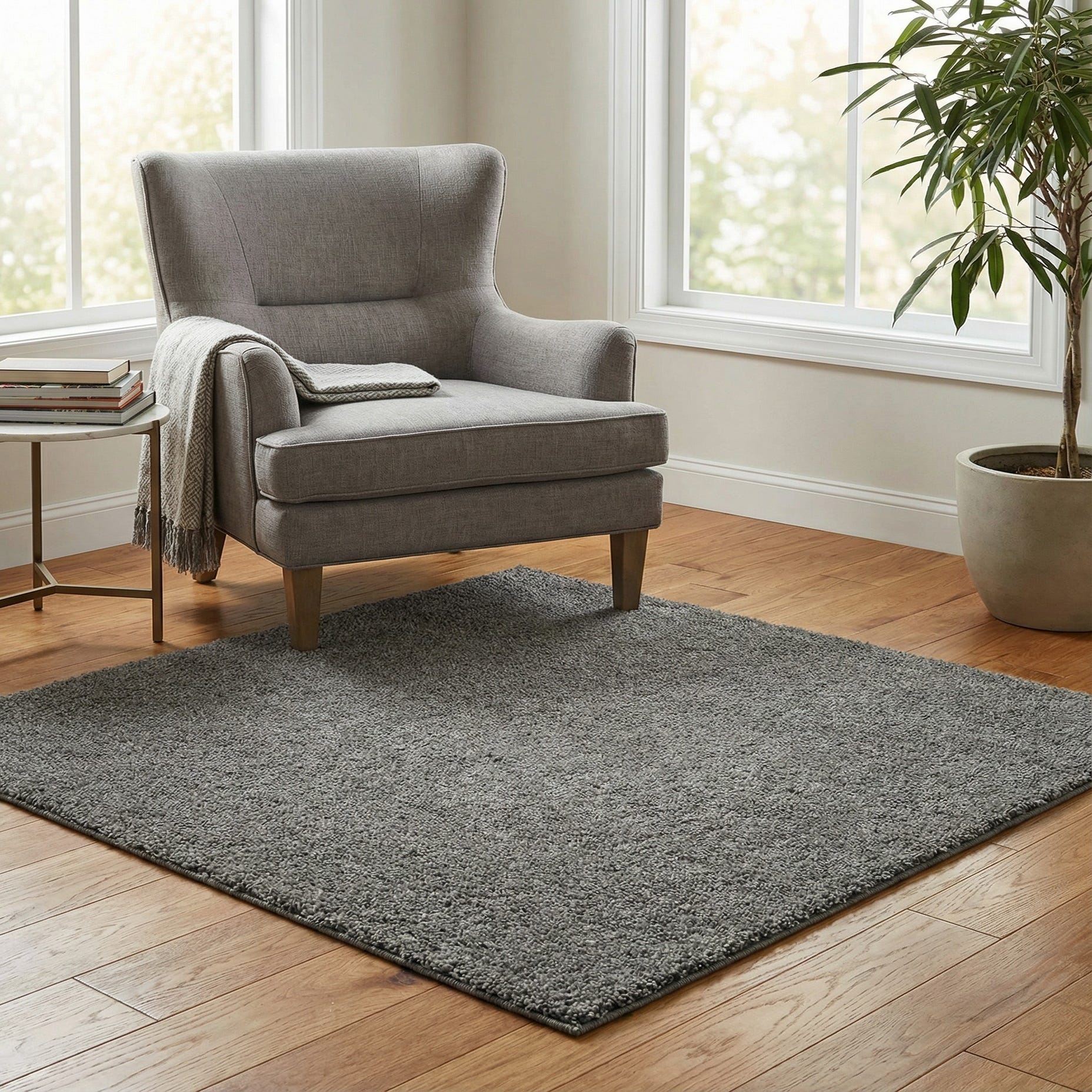 4' x 4' Solid Frieze Square Rug