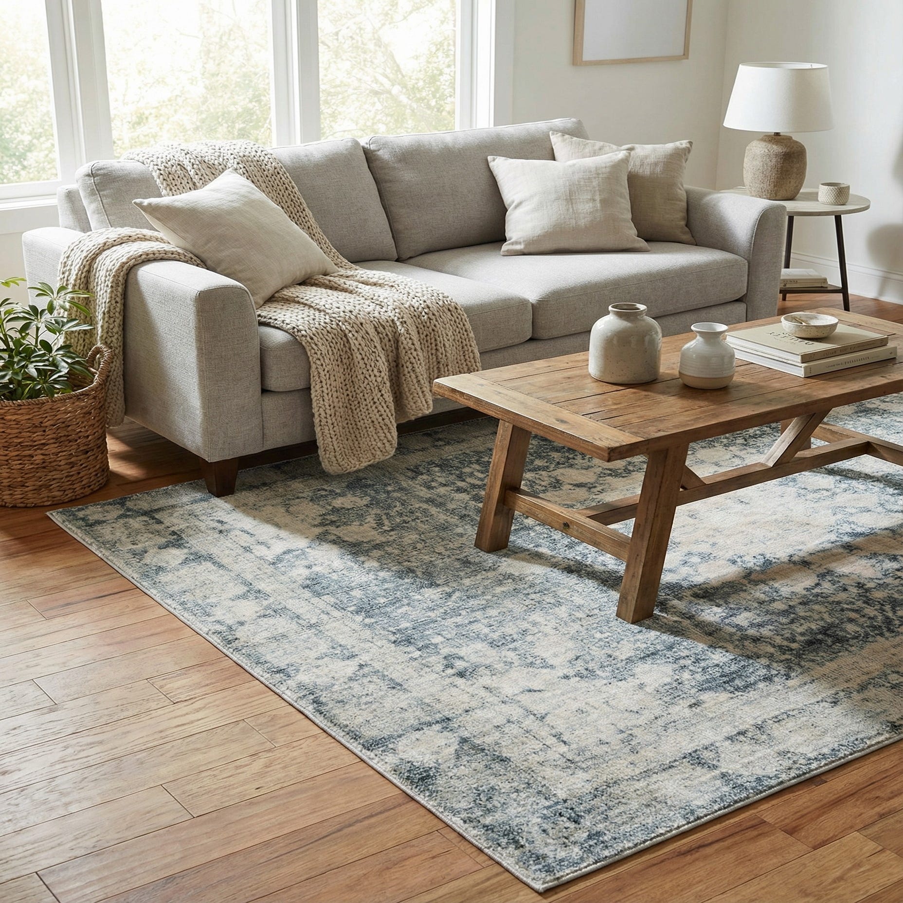 Primary color is Gray. Colors in this rug include: Gray, Beige, Ivory.