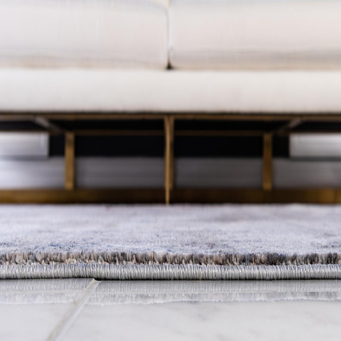 Primary color is Gray. Colors in this rug include: Gray, Beige, Blue, Navy Blue.