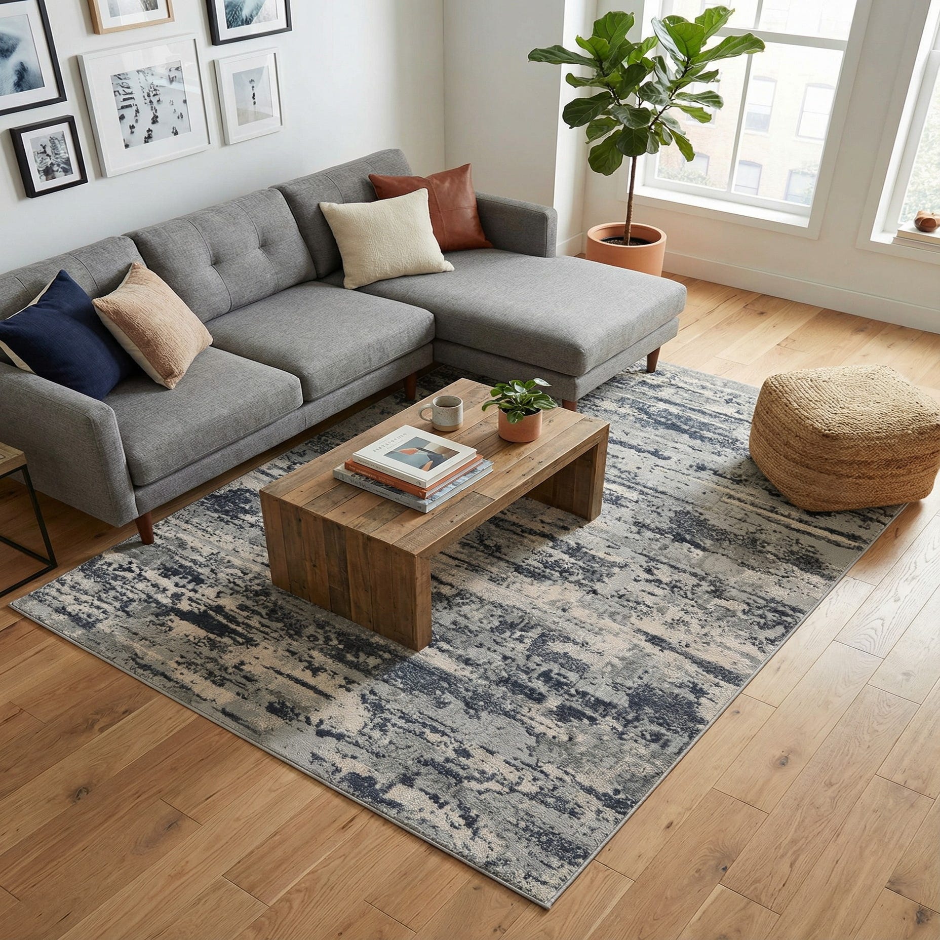 Primary color is Gray. Colors in this rug include: Gray, Ivory.