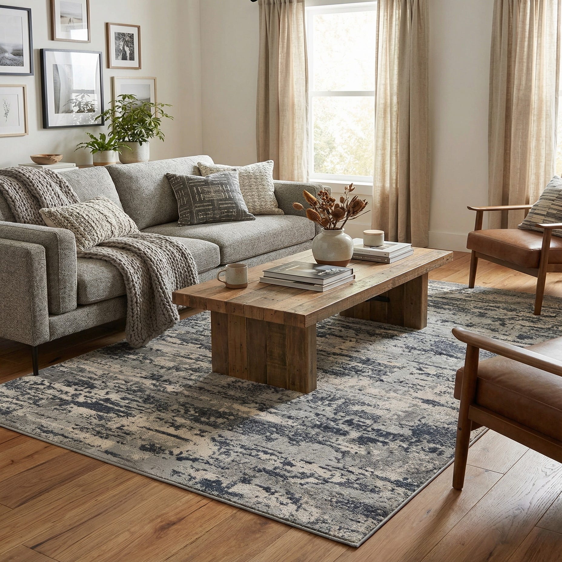 Primary color is Gray. Colors in this rug include: Gray, Ivory.