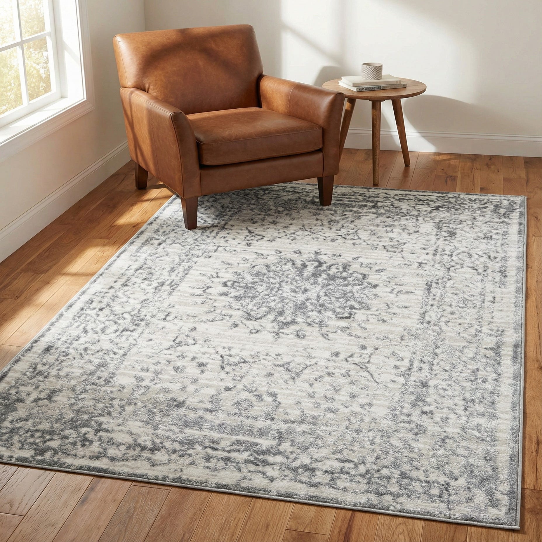 Primary color is Gray. Colors in this rug include: Gray, Beige.