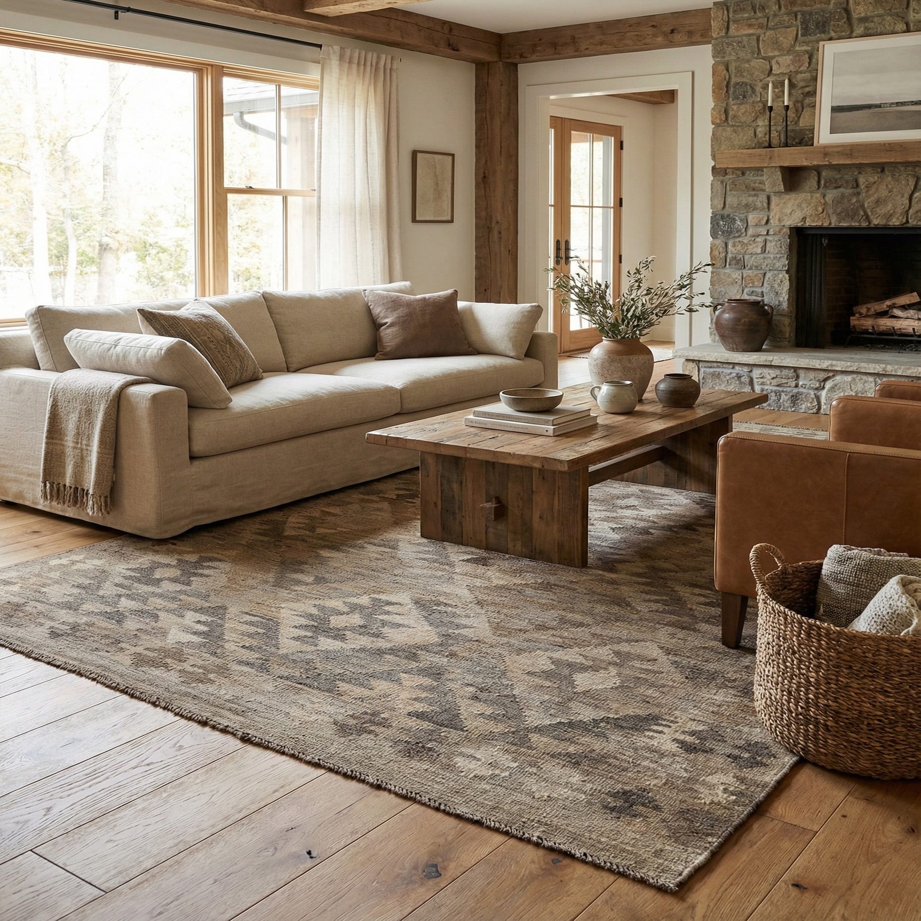 Primary color is Gray. Colors in this rug include: Gray, Beige.