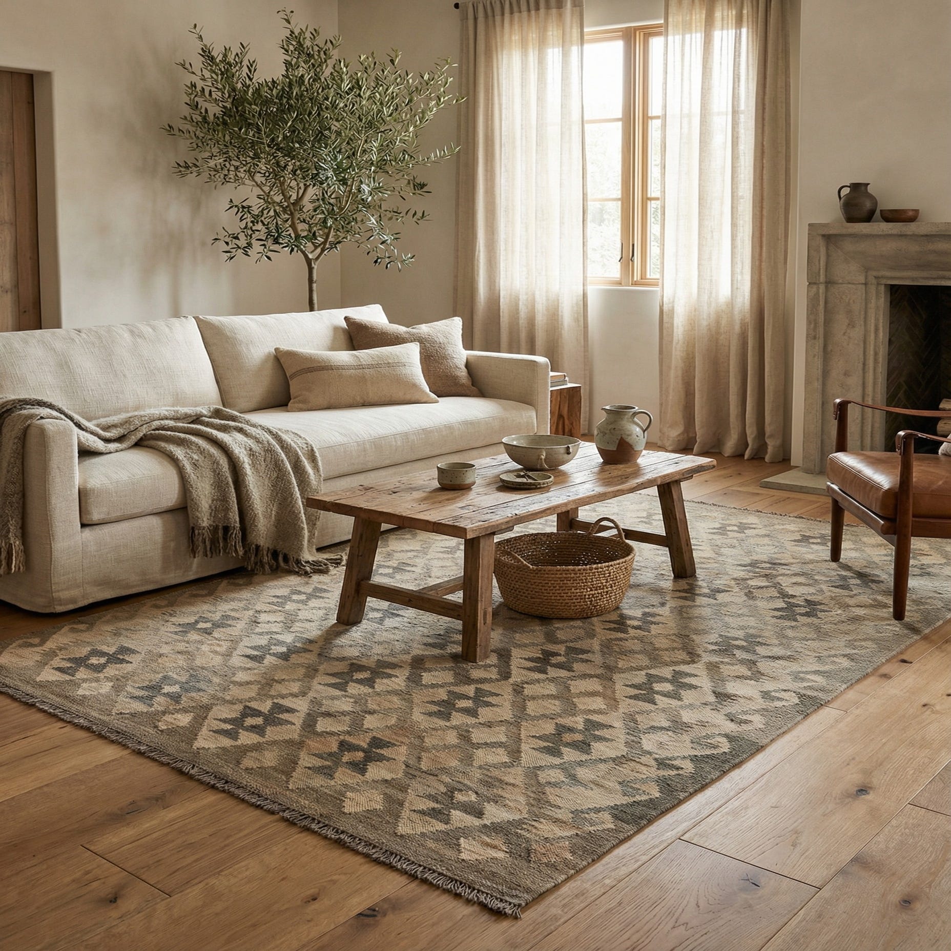 4' 3 x 6' Hand Woven Kilim Maymana Wool Rug
