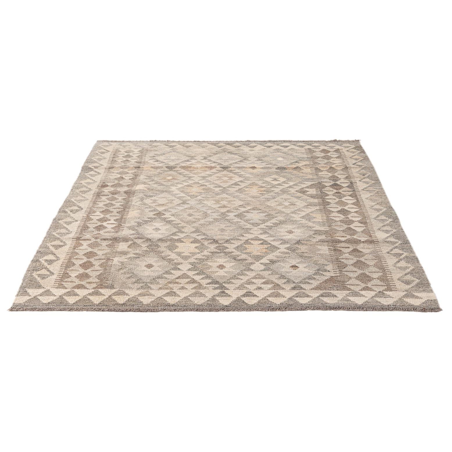 4' 5 x 5' 10 Hand Woven Kilim Maymana Wool Rug