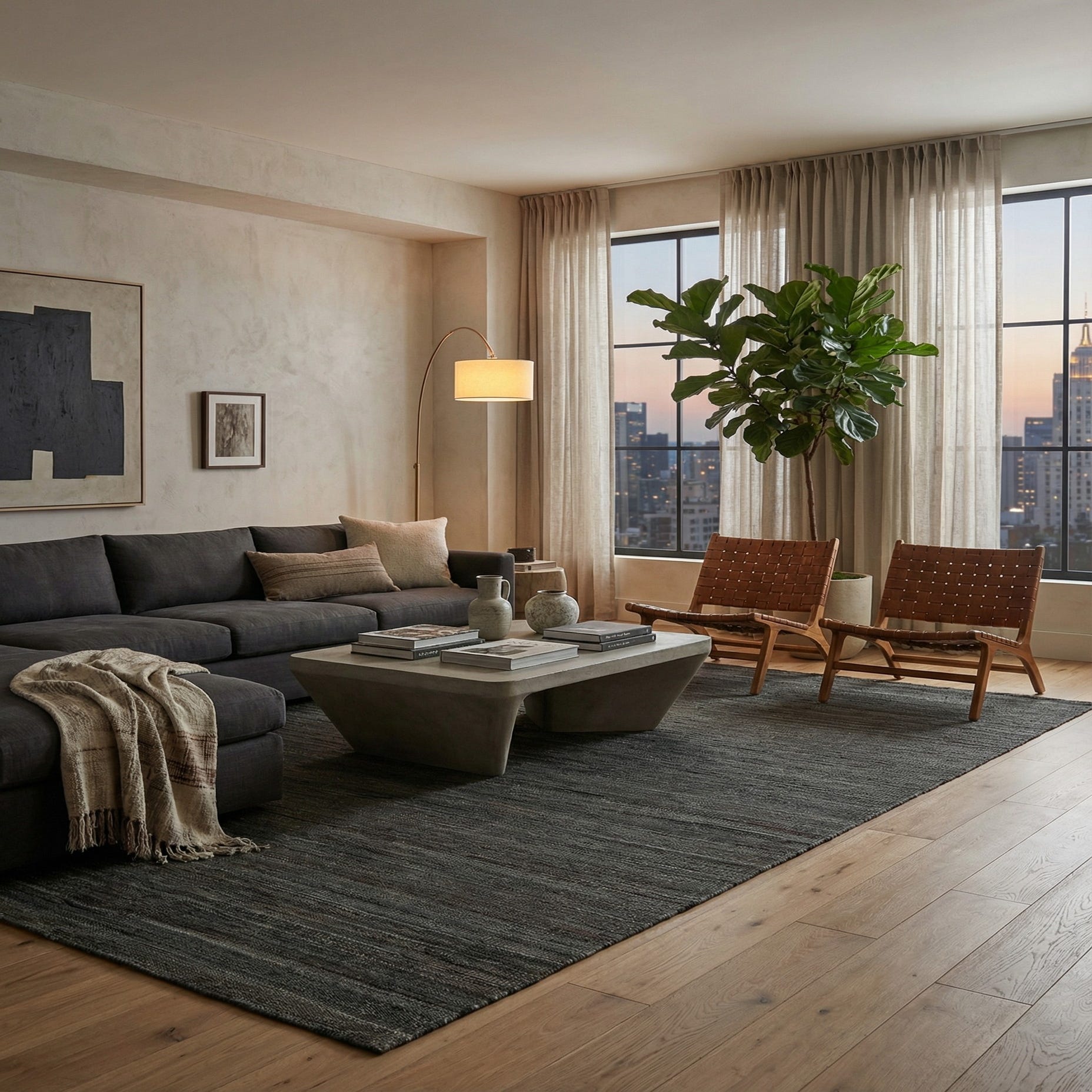 Primary color is Gray. Colors in this rug include: Gray, Black, Brown, Beige.