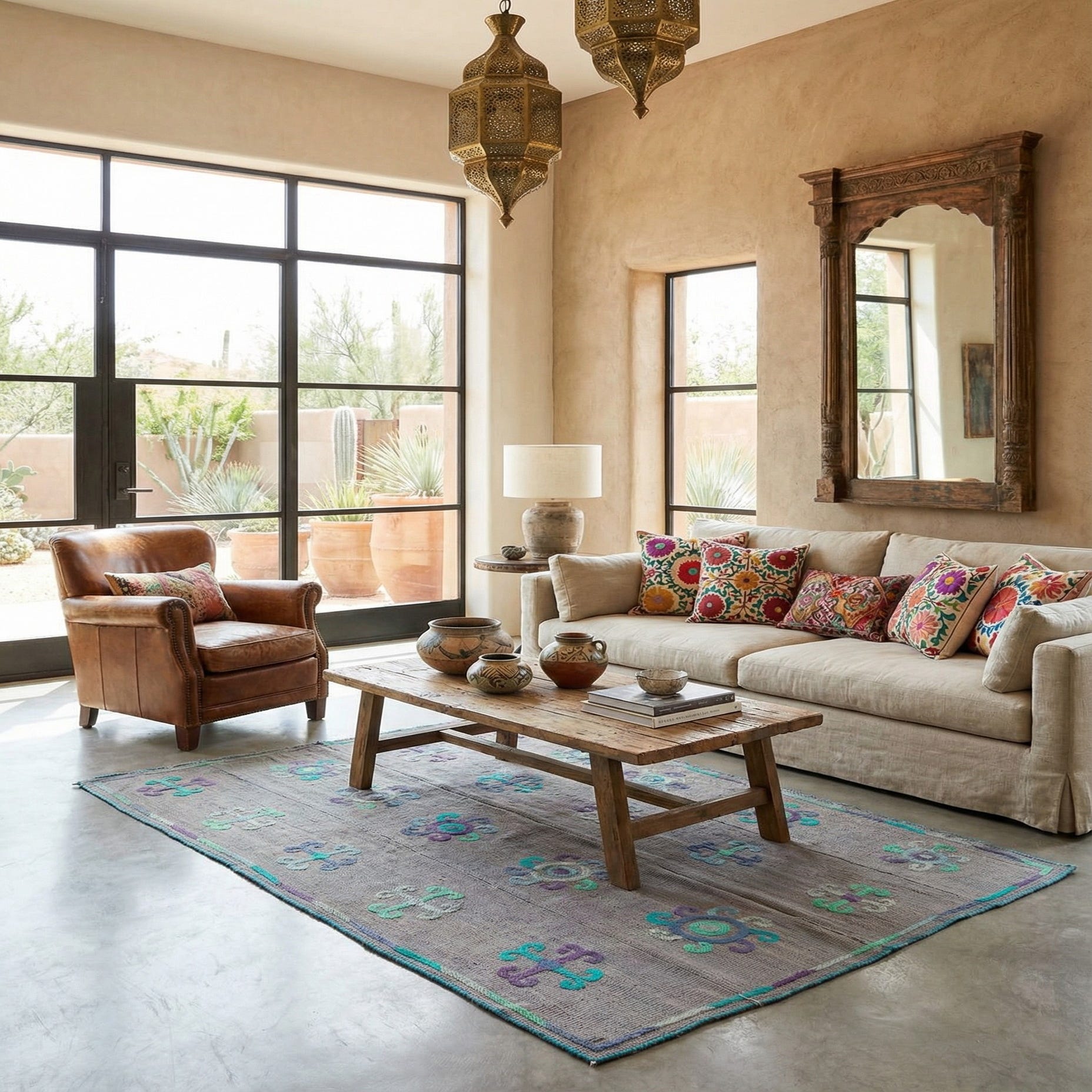 4' 3 x 5' 5 Hand Woven Kilim Suzani Wool Rug