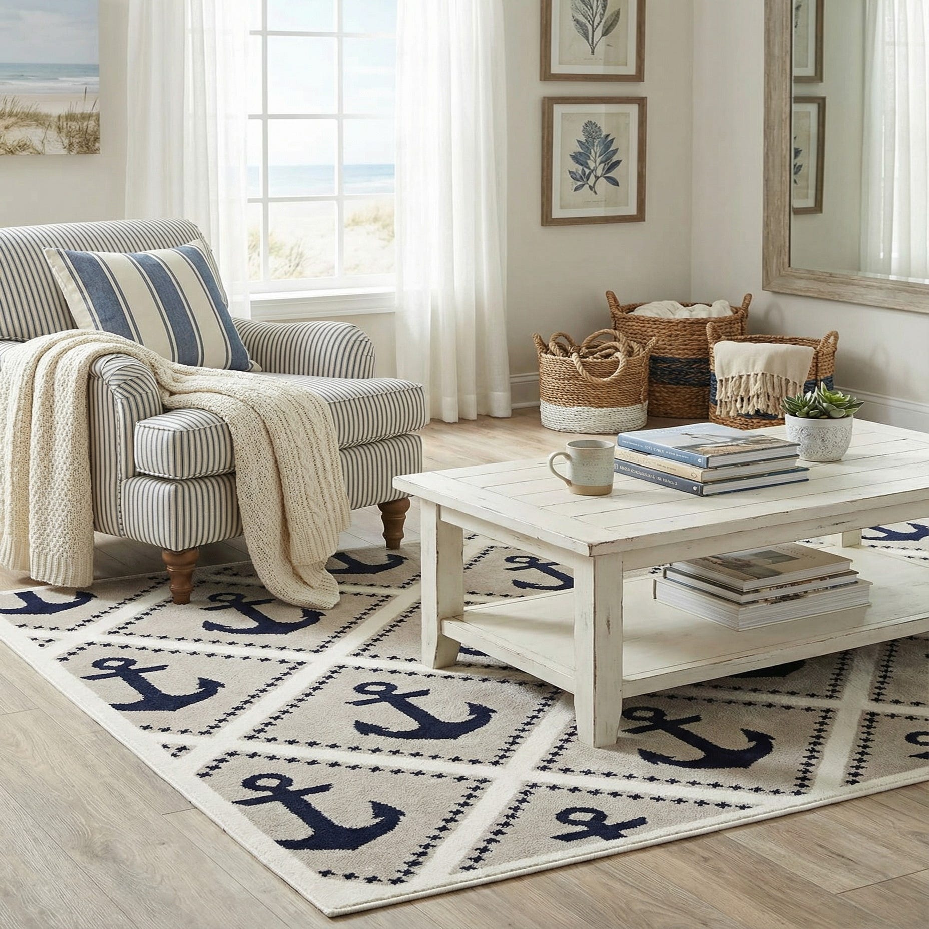 Primary color is Gray. Colors in this rug include: Gray, Ivory, Navy Blue.