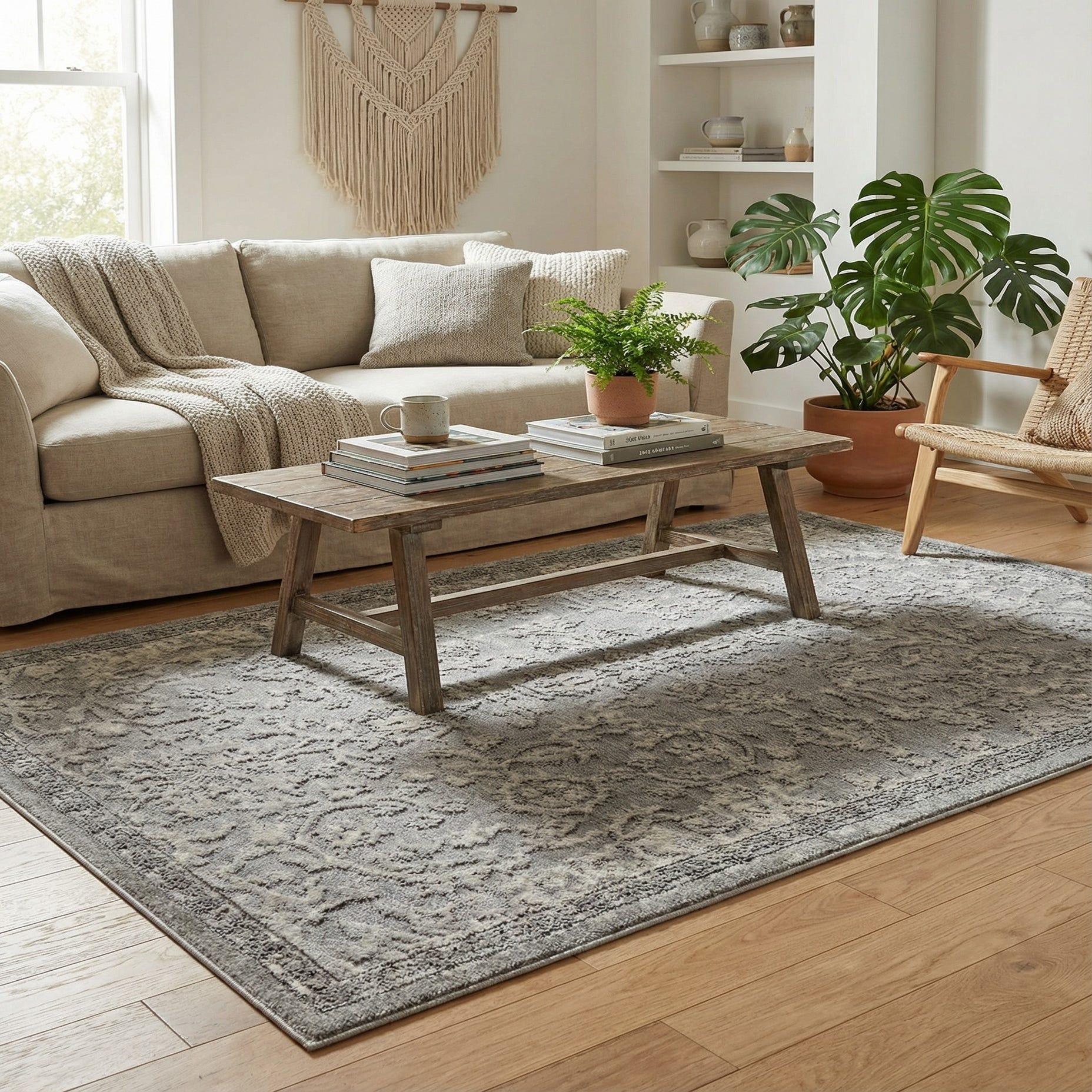 Primary color is Gray. Colors in this rug include: Gray, Ivory.