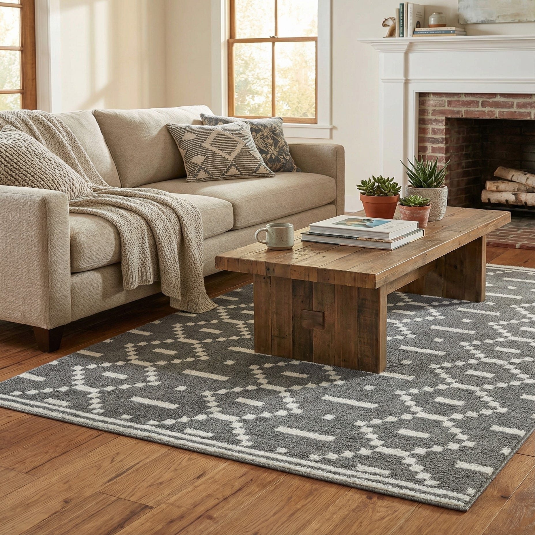 Primary color is Gray. Colors in this rug include: Gray, Ivory.