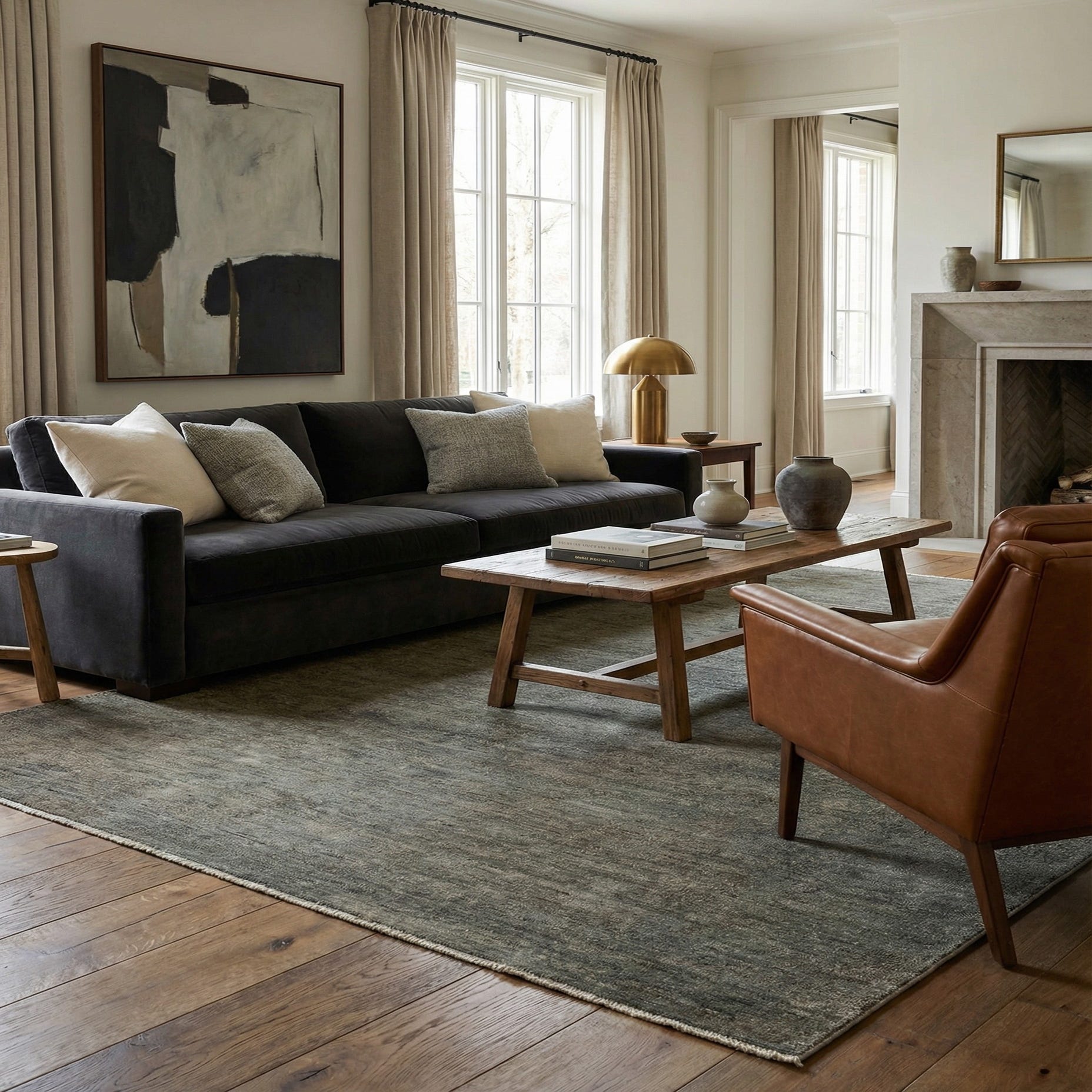 Primary color is Gray. Colors in this rug include: Gray, Olive.