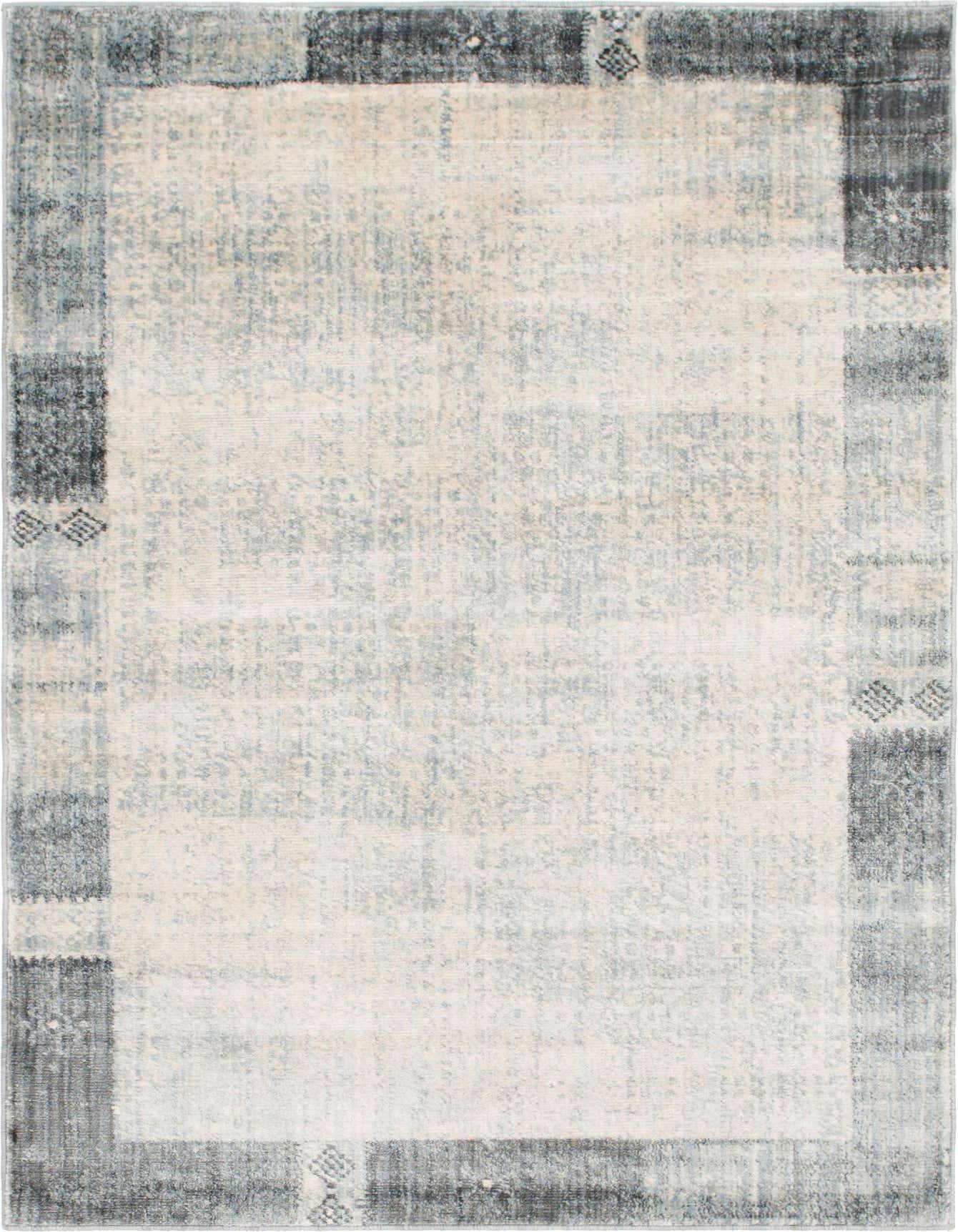 Primary color is Gray. Colors in this rug include: Gray, Beige, Light Blue.