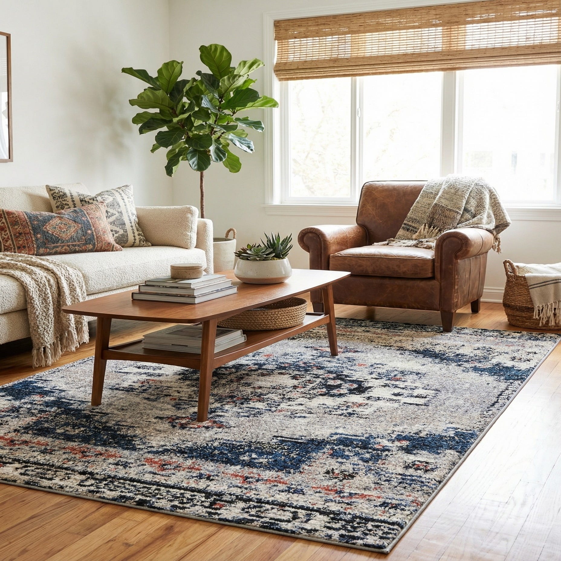 Primary color is Gray. Colors in this rug include: Gray, Beige, Black, Rust Red, Ivory.