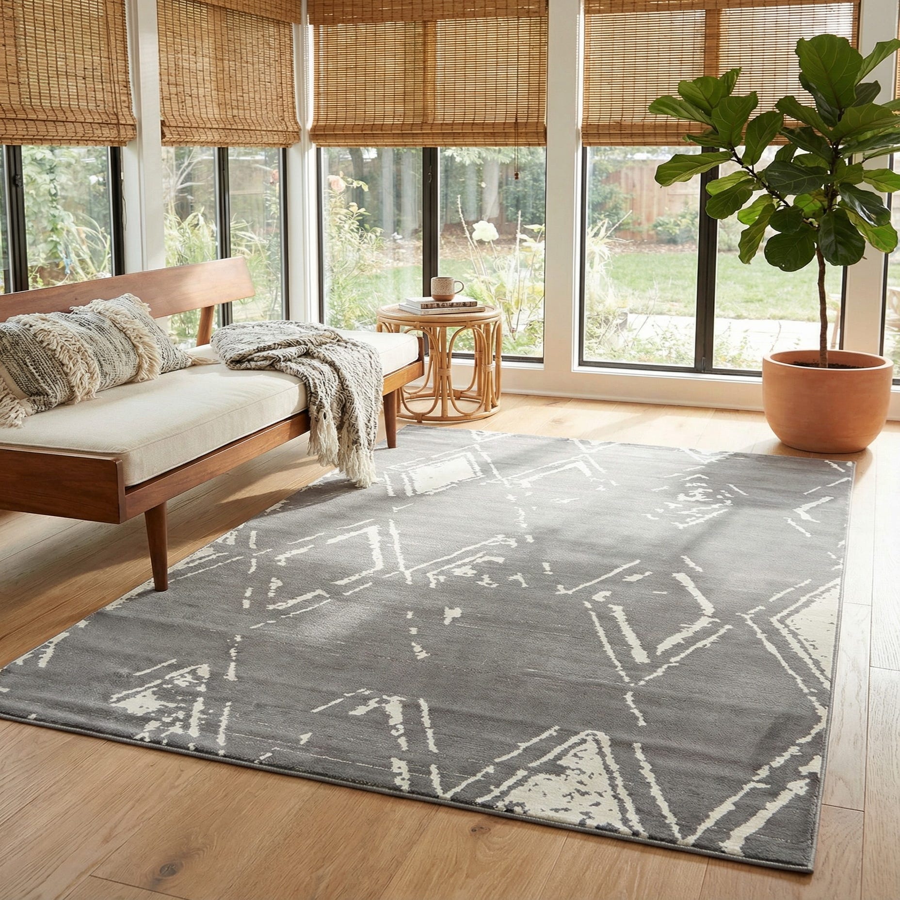 Primary color is Gray. Colors in this rug include: Gray, Ivory.