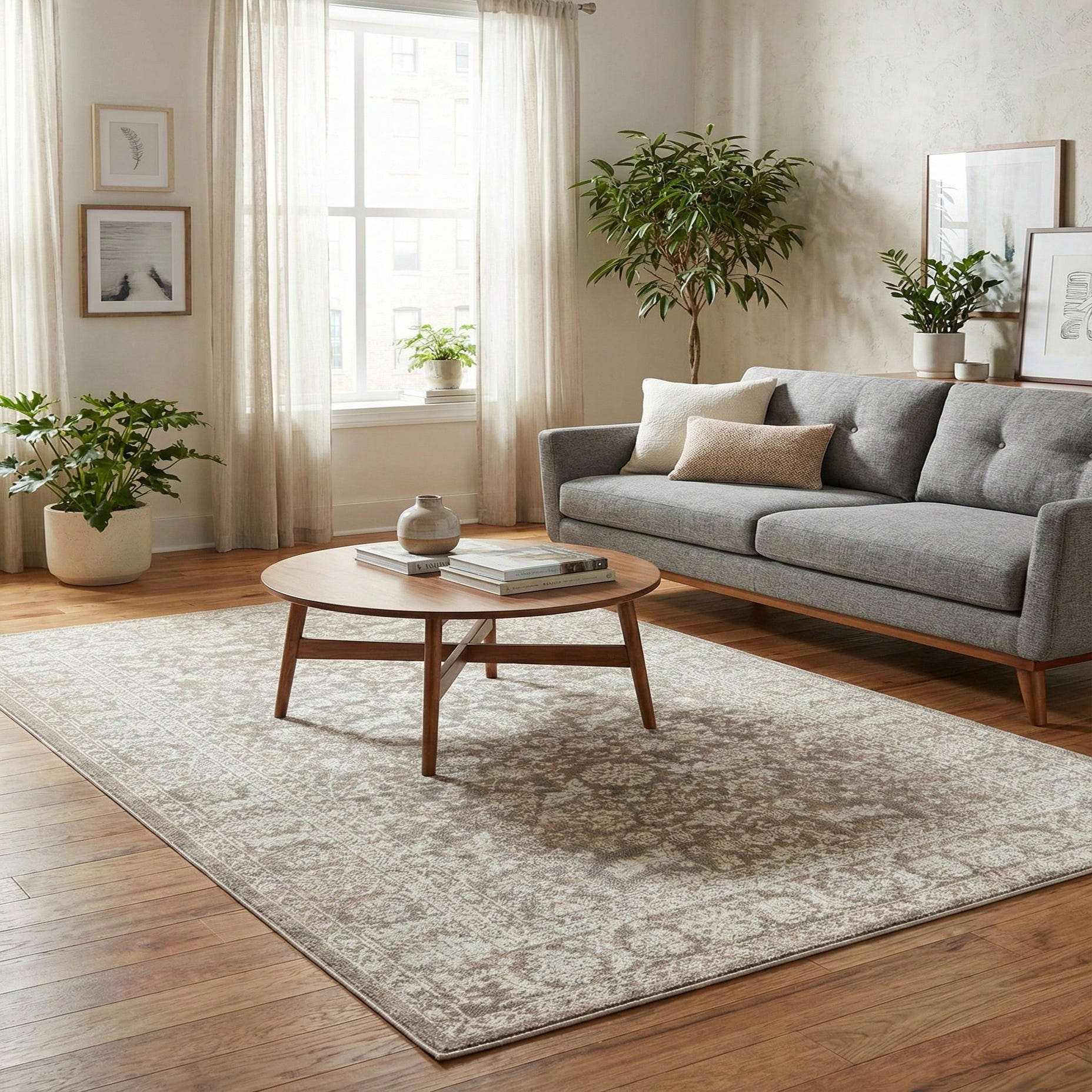 Primary color is Gray. Colors in this rug include: Gray, Ivory, Beige.