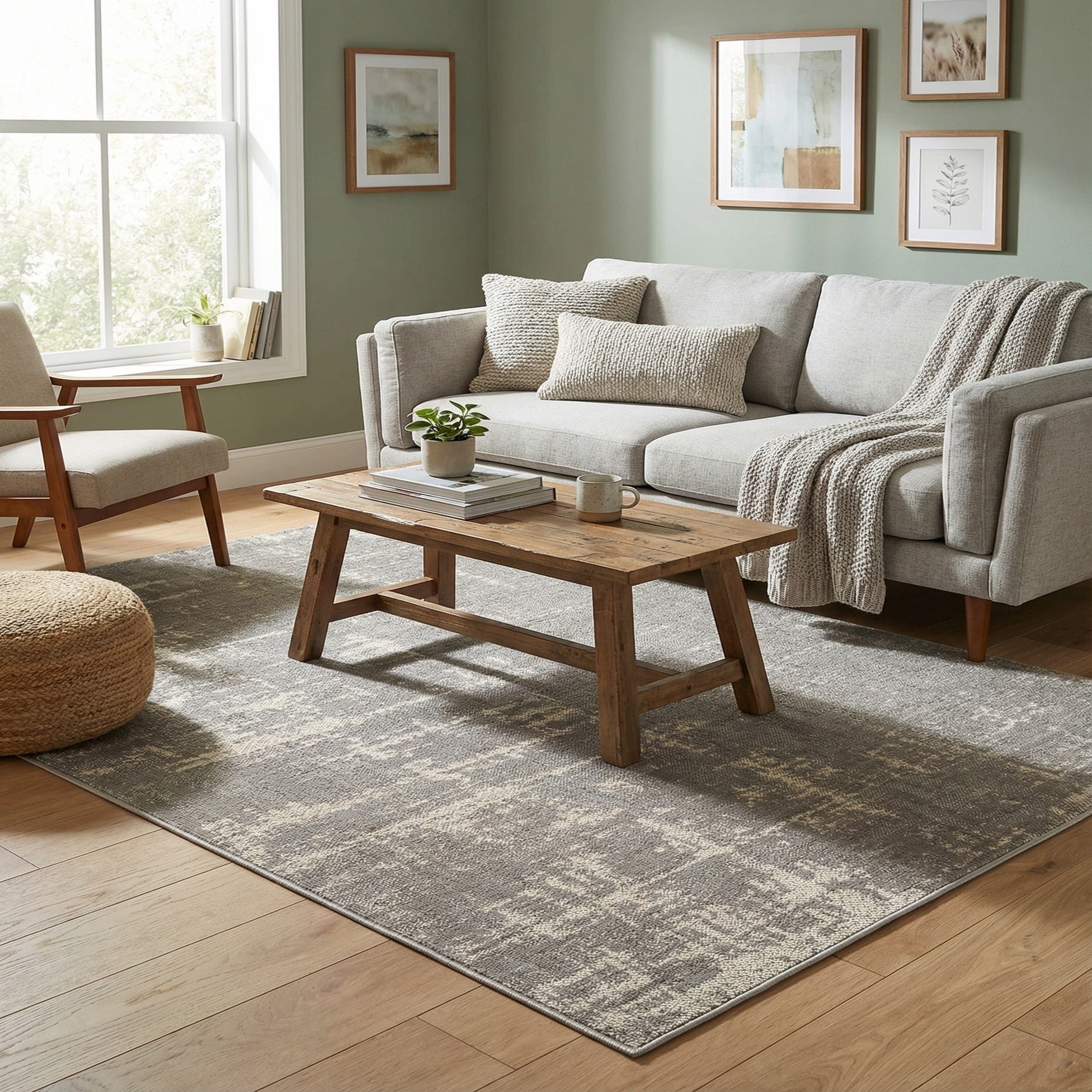 Primary color is Gray. Colors in this rug include: Gray, Ivory.