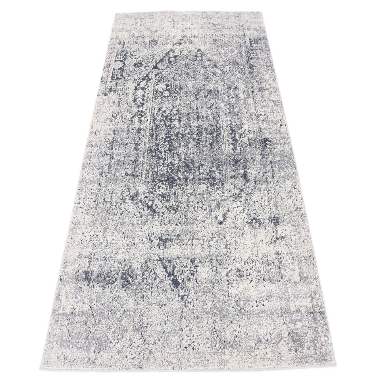 Primary color is Gray. Colors in this rug include: Gray, Beige, Navy Blue.
