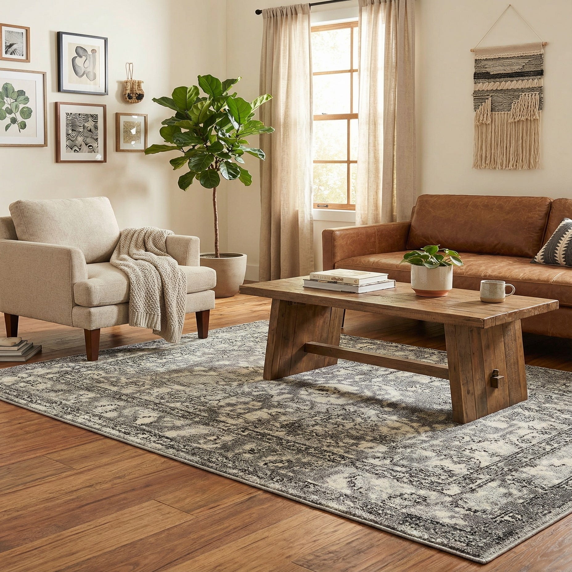 Primary color is Gray. Colors in this rug include: Gray, Silver, Ivory.