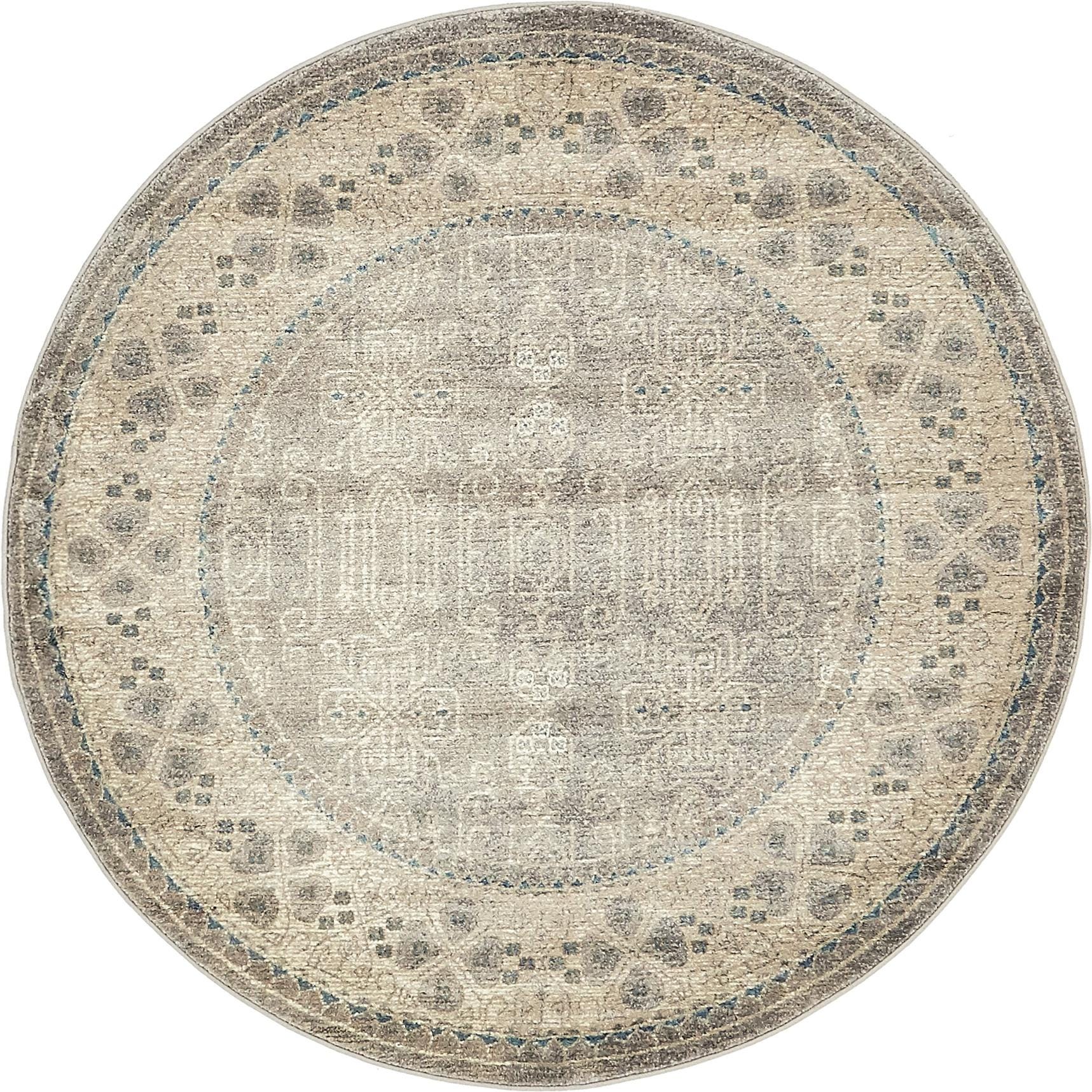 Primary color is Gray. Colors in this rug include: Gray, Ivory, Light Blue.