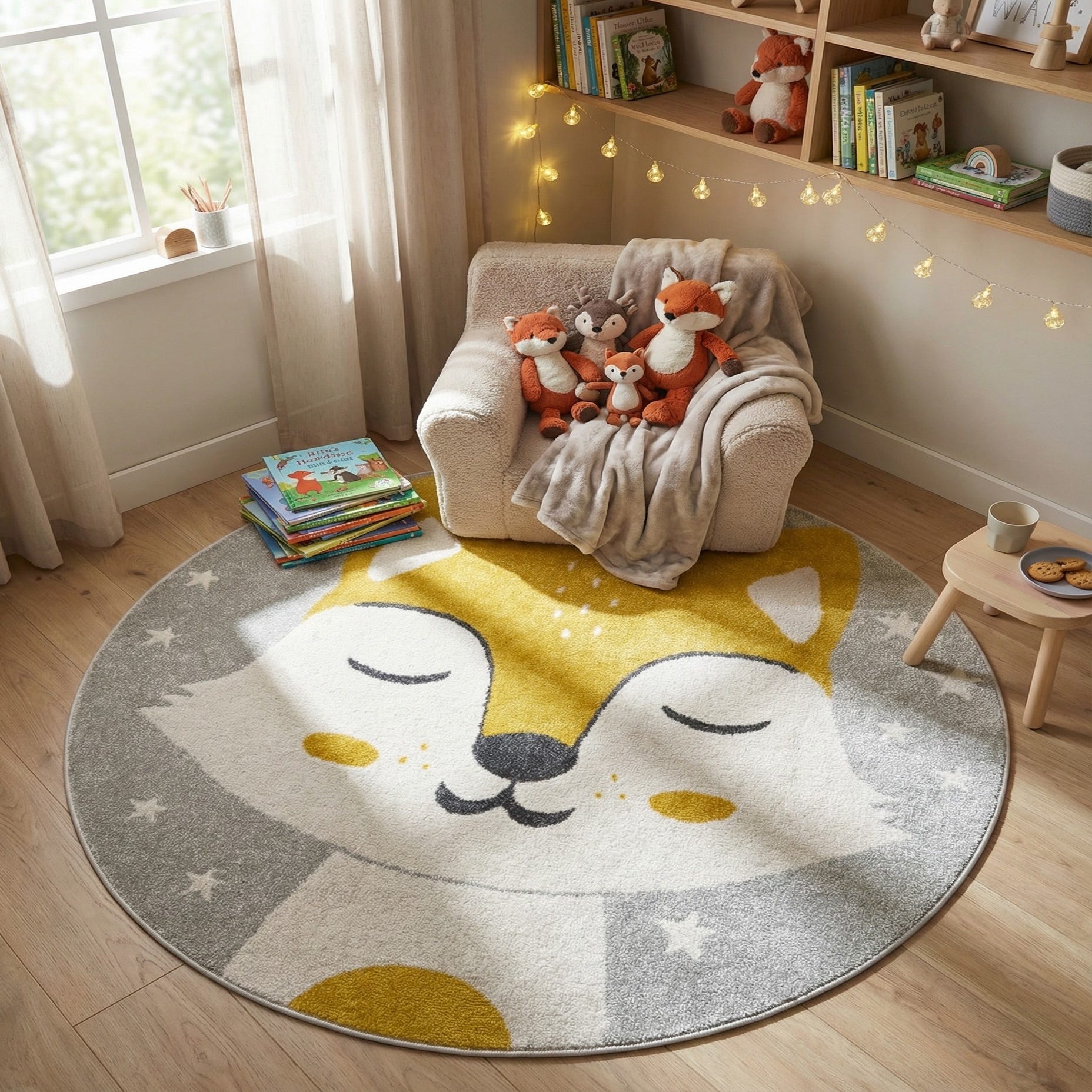 5' 3 x 5' 3 Fox Whimsy Kids Round Rug