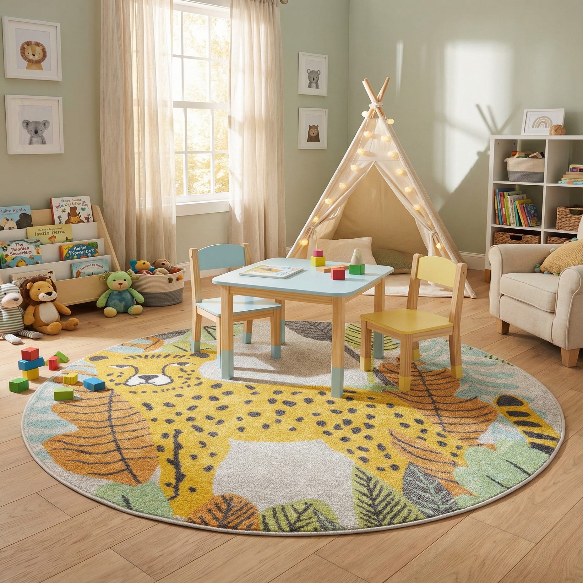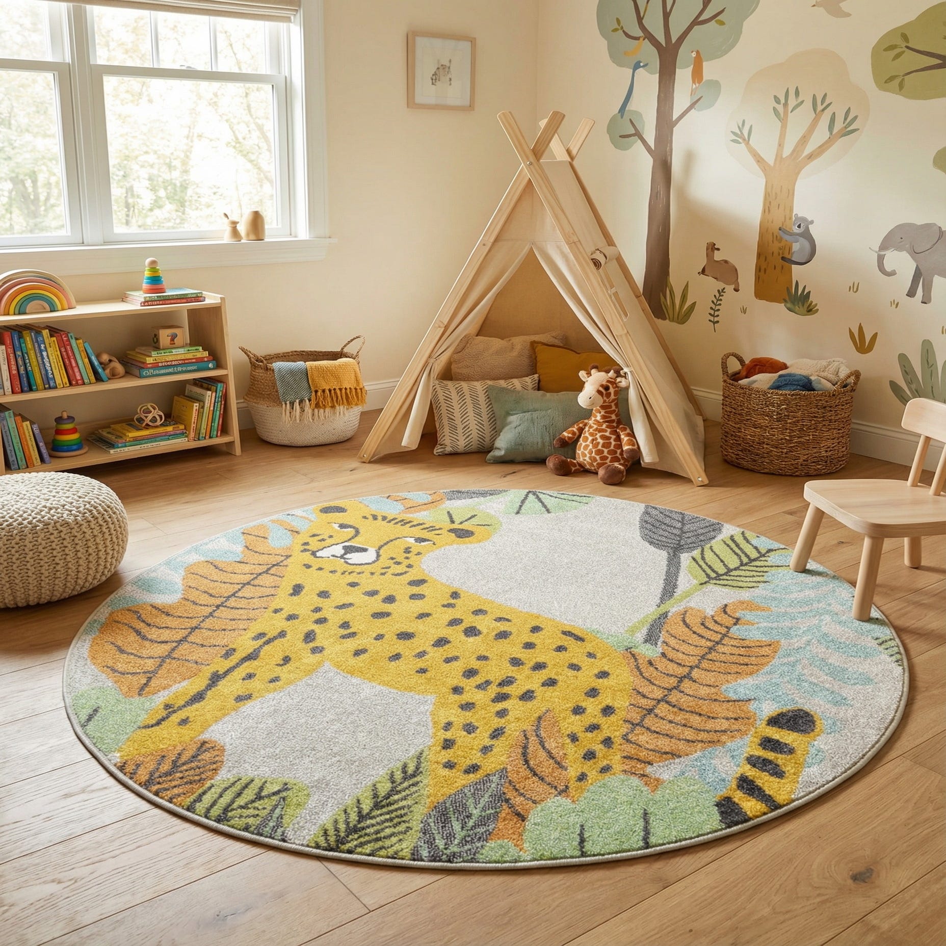 5' 3 x 5' 3 Leopard Whimsy Kids Round Rug
