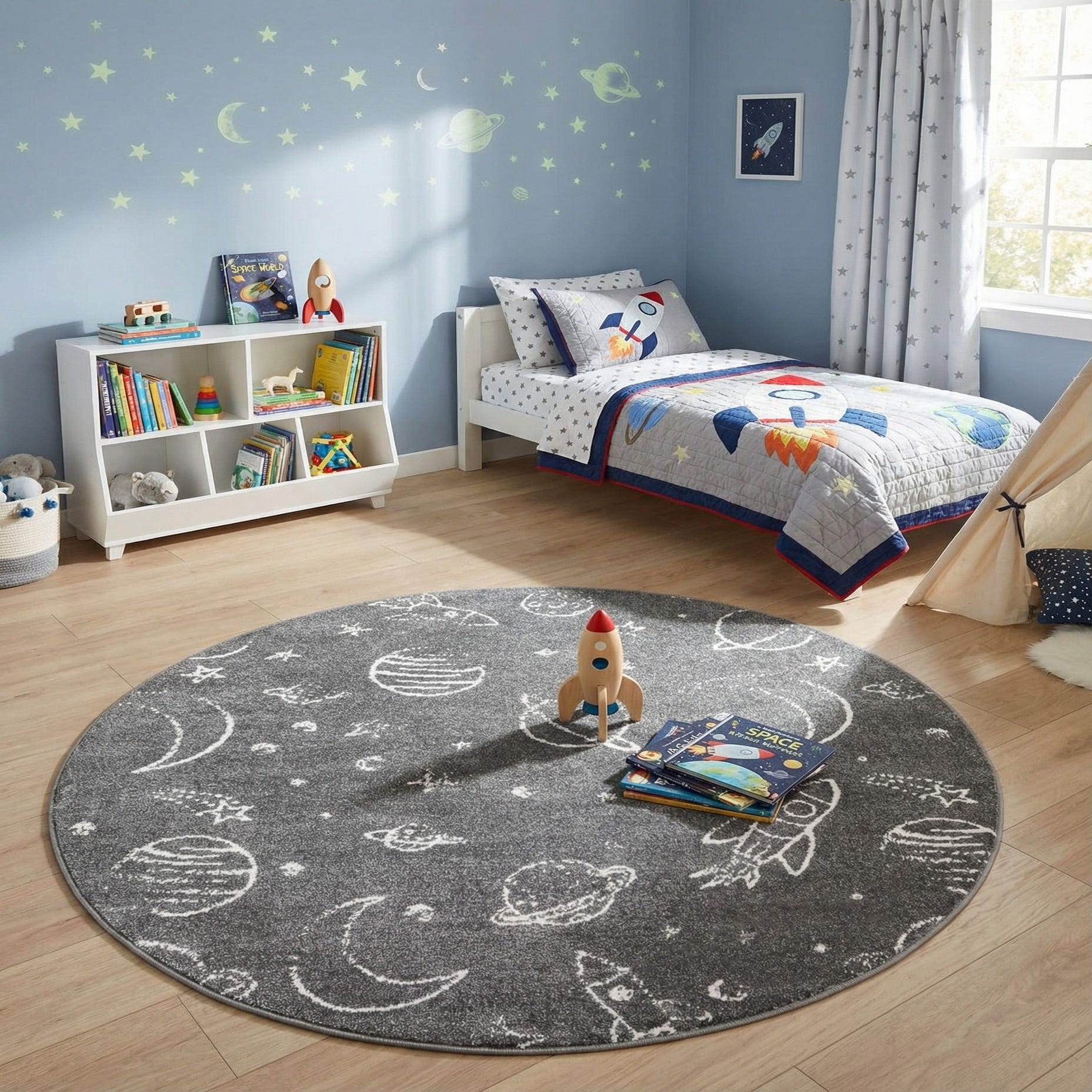 5' 3 x 5' 3 Planets Whimsy Kids Round Rug