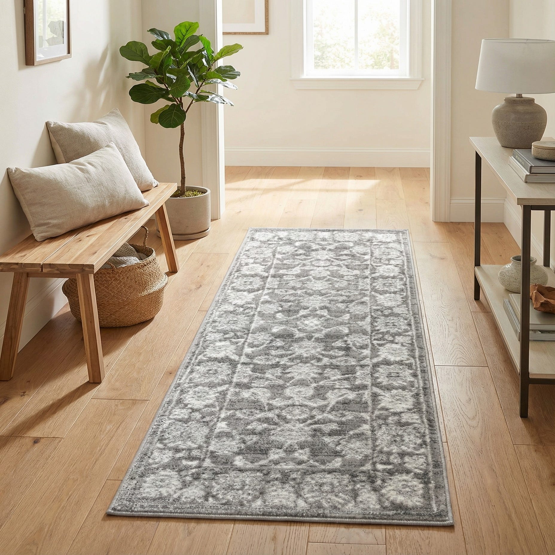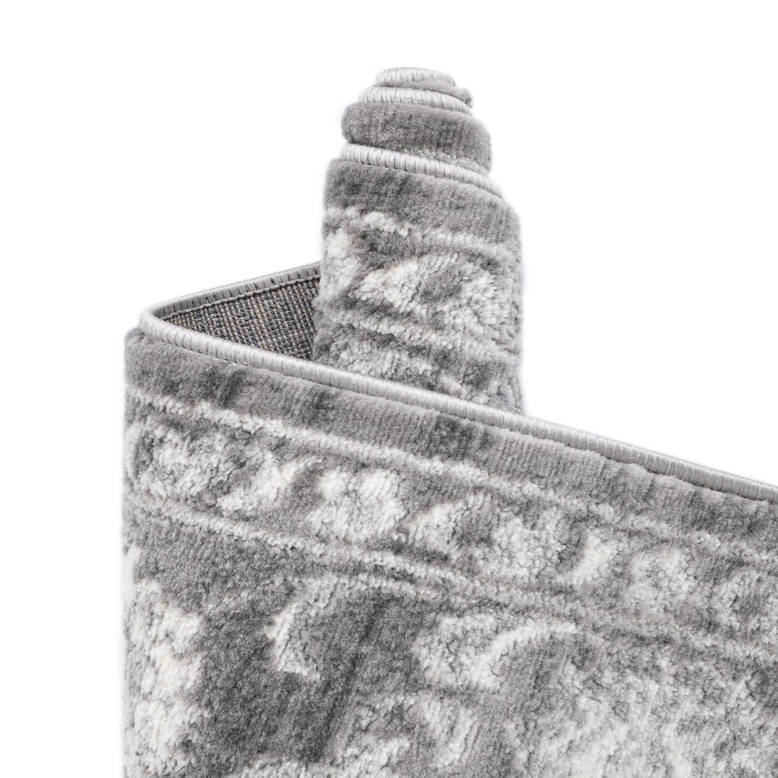 Primary color is Gray. Colors in this rug include: Gray, Ivory.