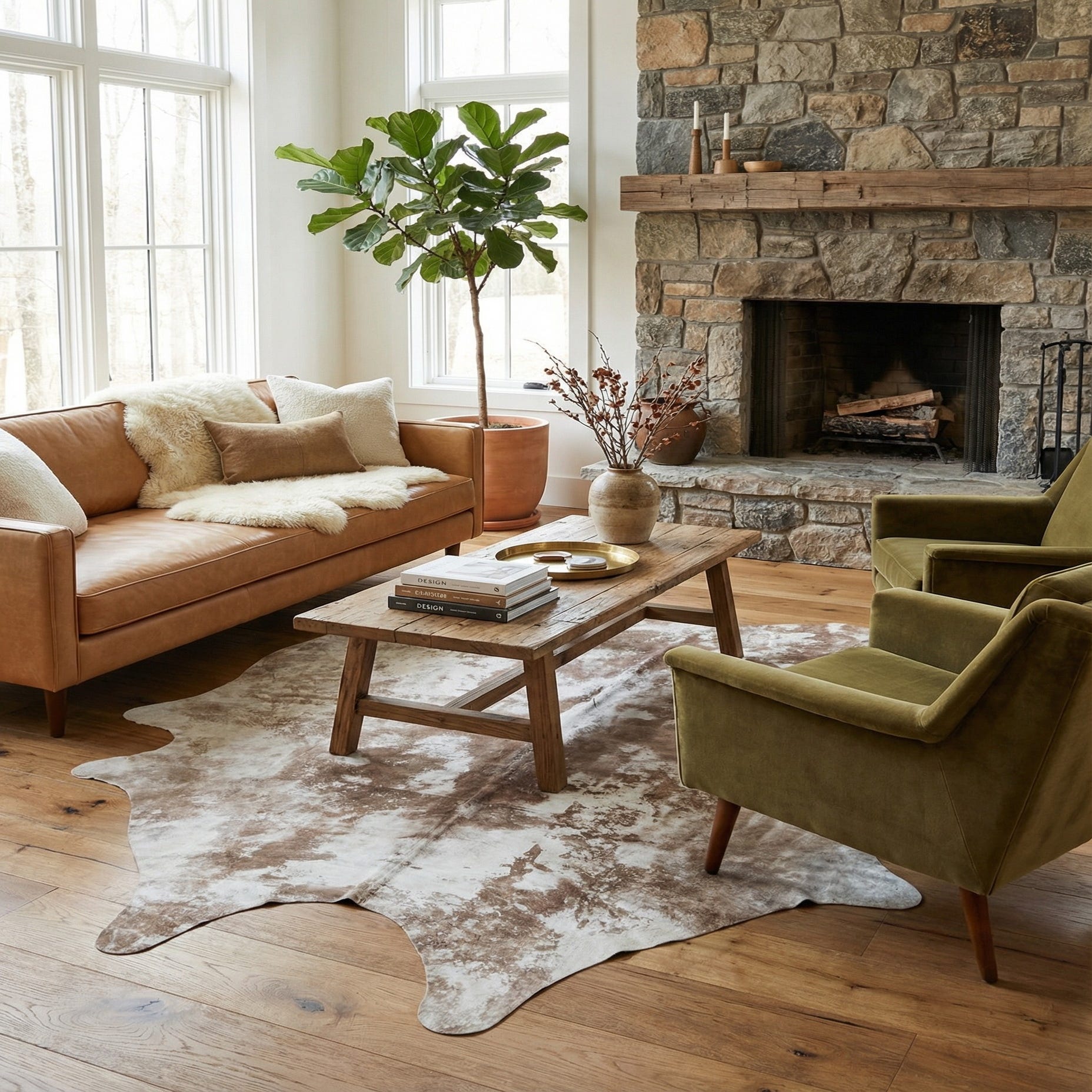Detail image of 5' 2 x 5' 10 Cowhide Leather Rug