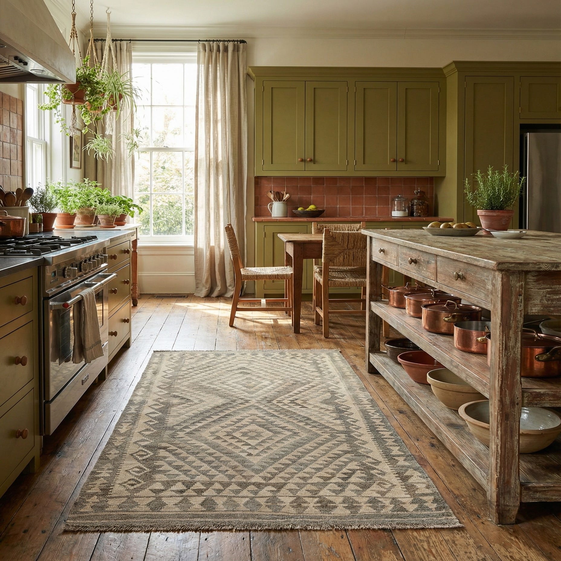 4' x 7' 3 Hand Woven Kilim Maymana Wool Rug
