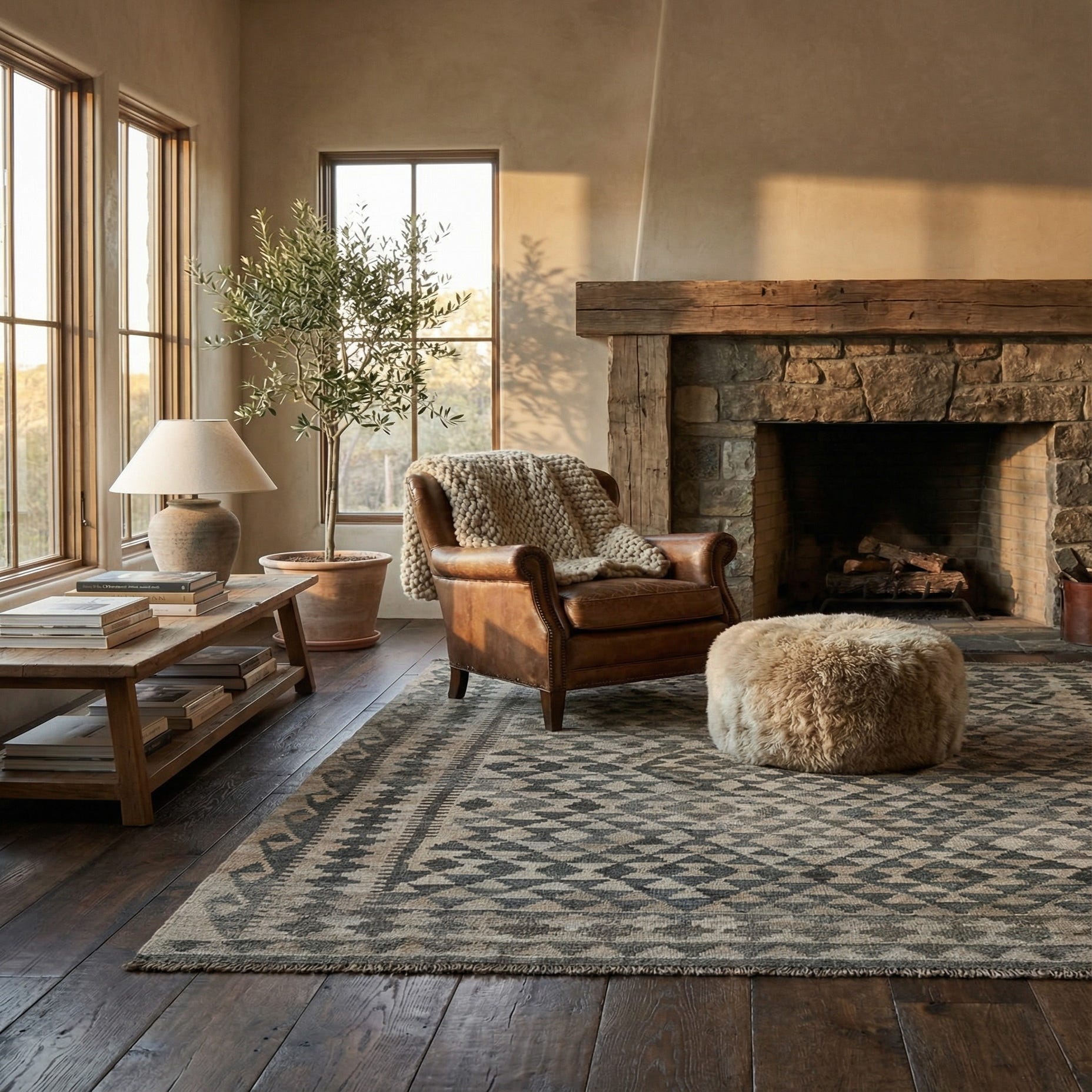 4' 11 x 6' 3 Hand Woven Kilim Maymana Wool Rug