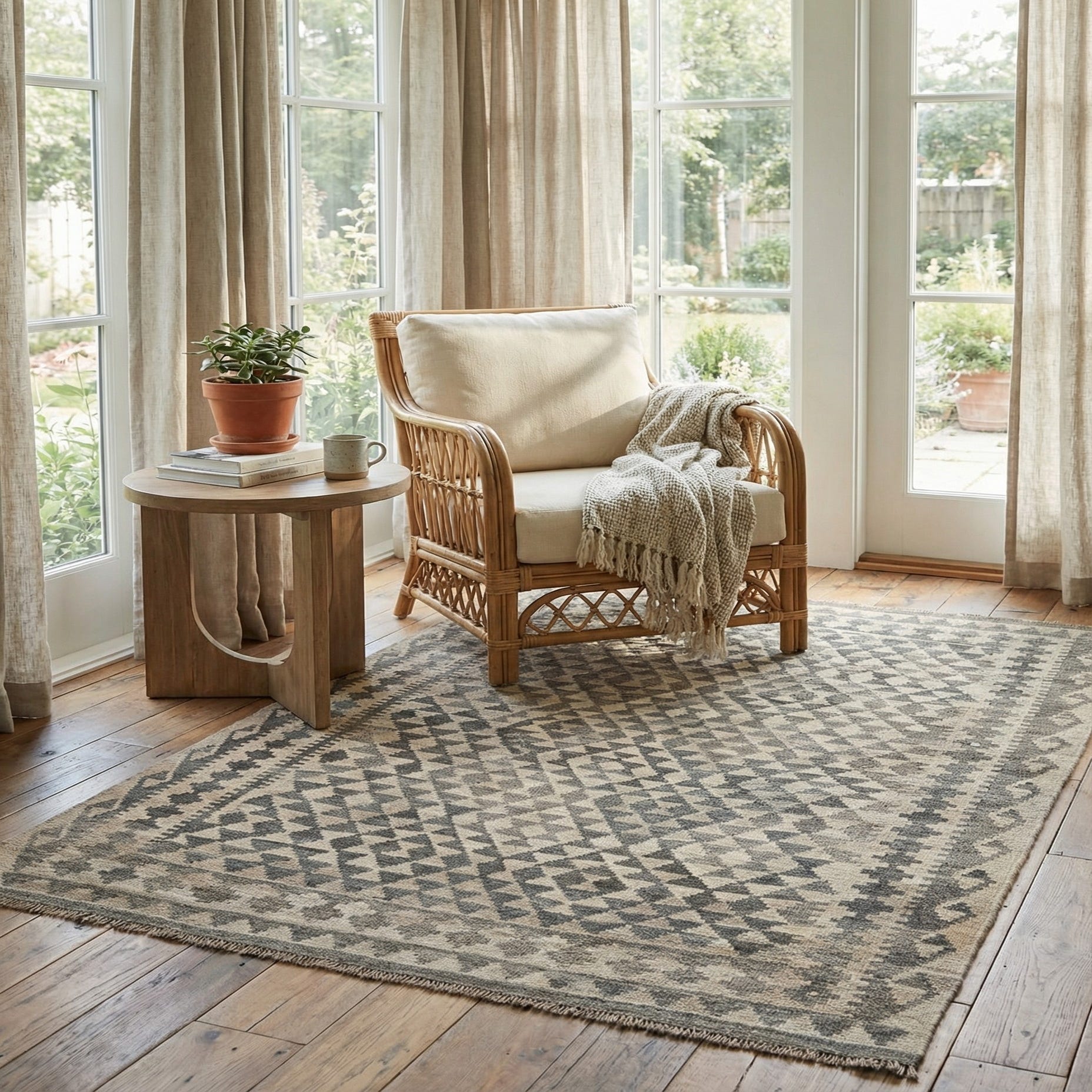 Detail image of 4' 11 x 6' 3  Hand Woven Kilim Maymana Wool Rug