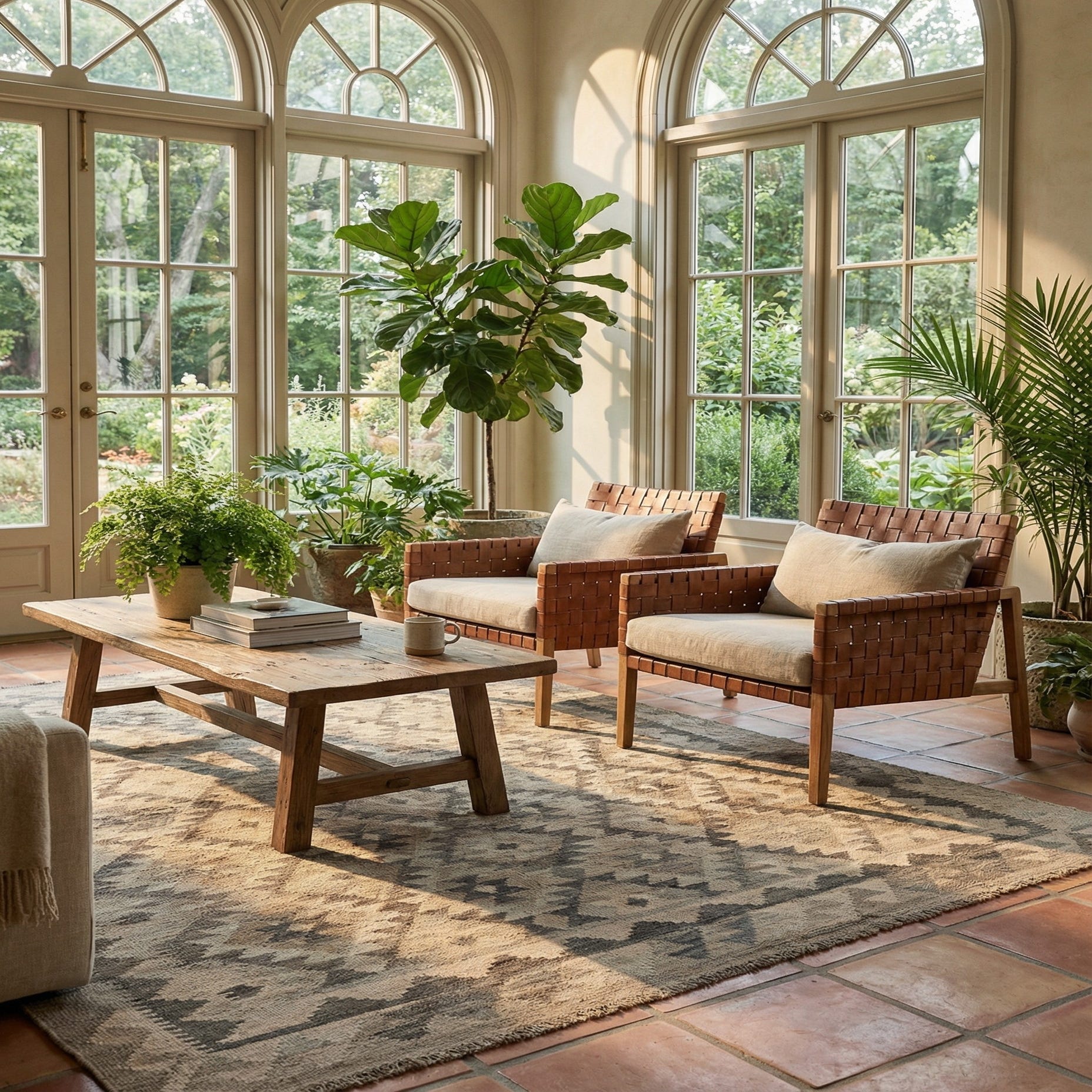 4' 11 x 6' 7 Hand Woven Kilim Maymana Wool Rug