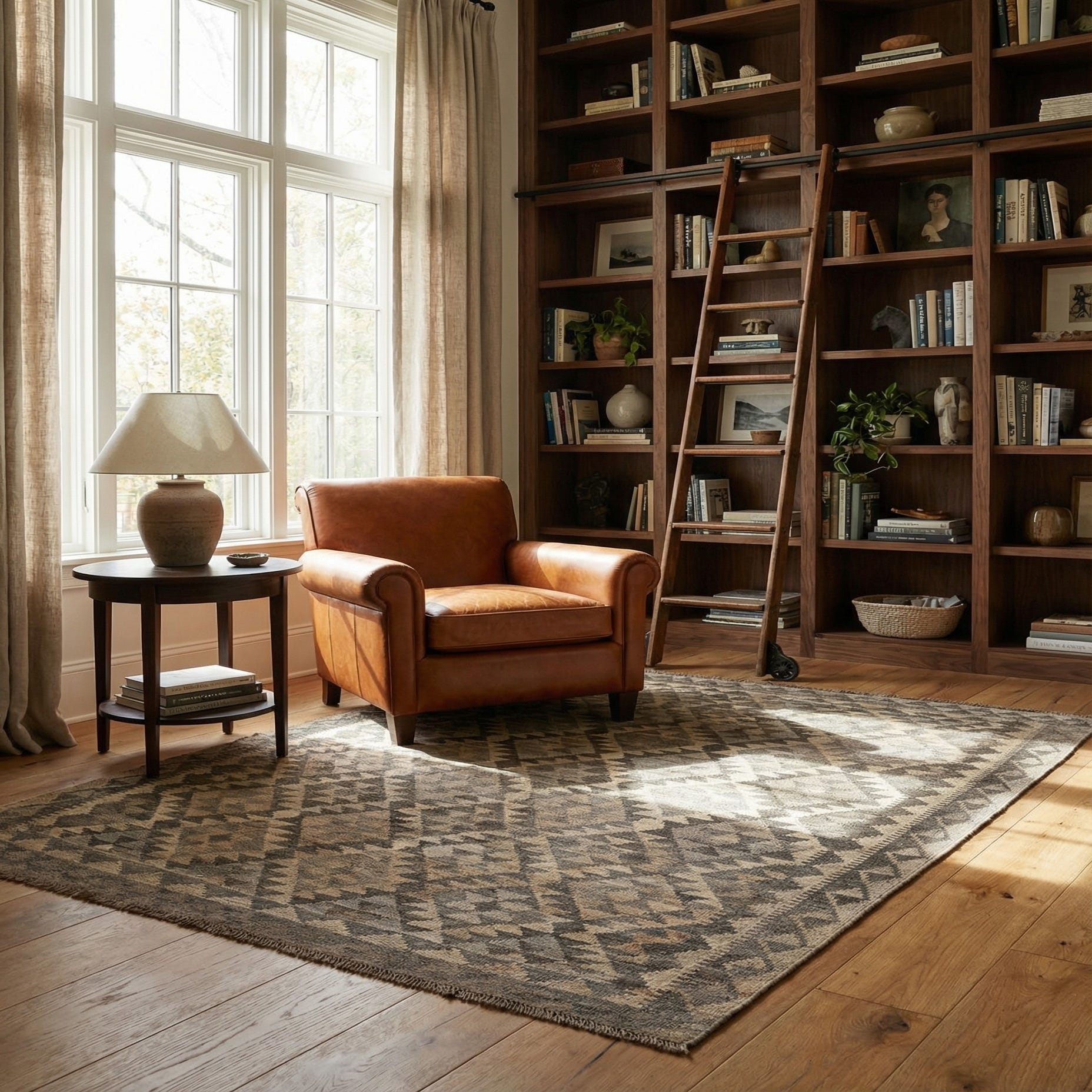 5' 1 x 6' 6 Hand Woven Kilim Maymana Wool Rug