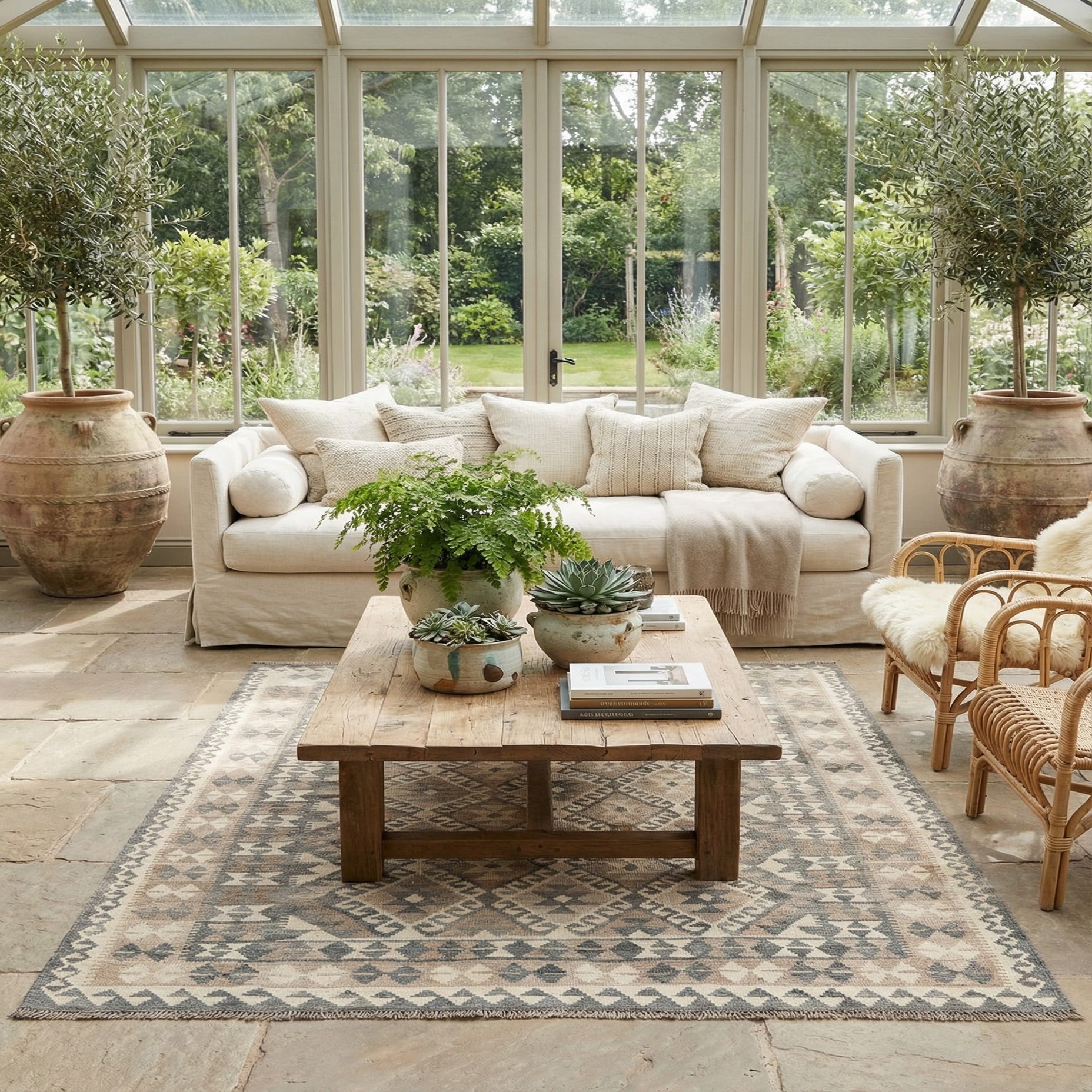 5' 4 x 6' 7 Hand Woven Kilim Maymana Wool Rug