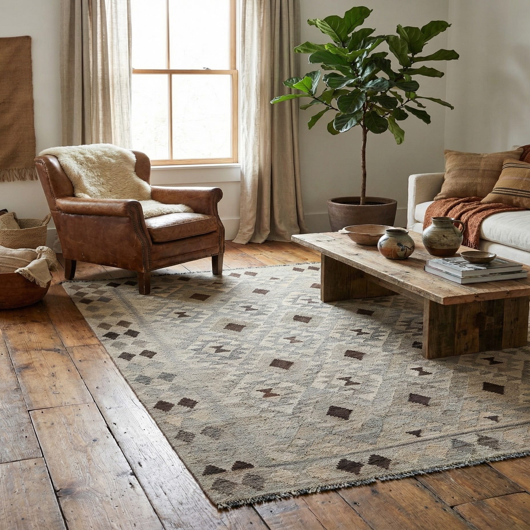 5' 3 x 6' 7 Hand Woven Kilim Maymana Wool Rug