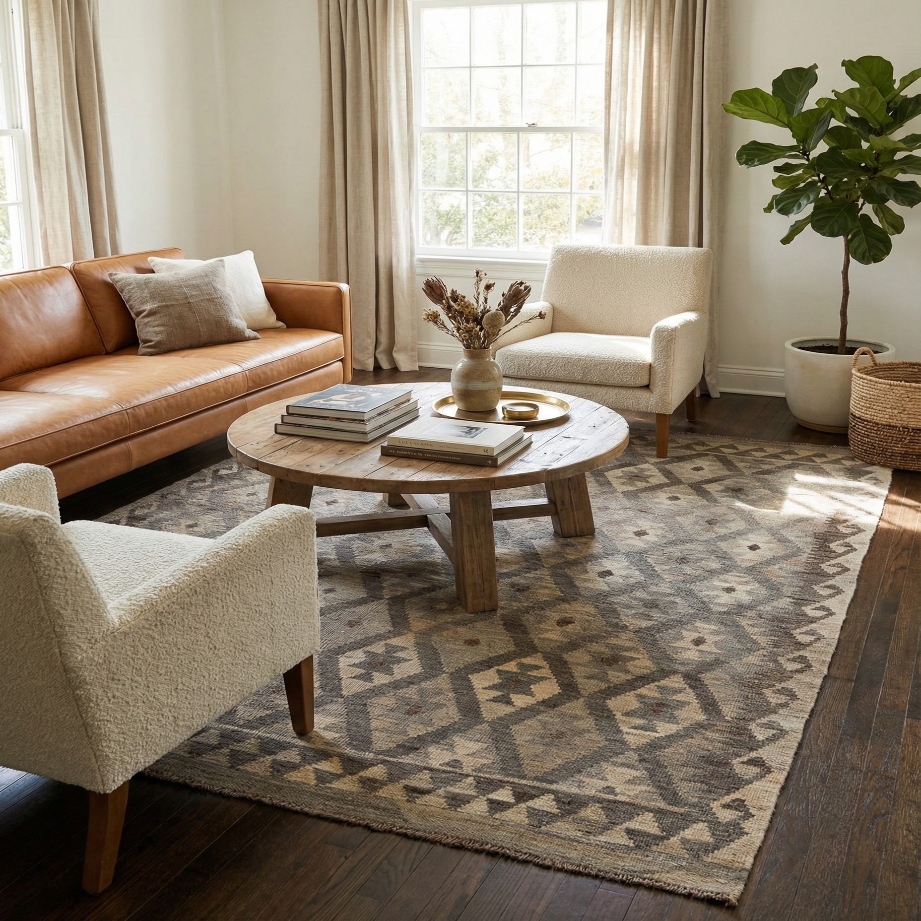 5' 3 x 6' 5 Hand Woven Kilim Maymana Wool Rug