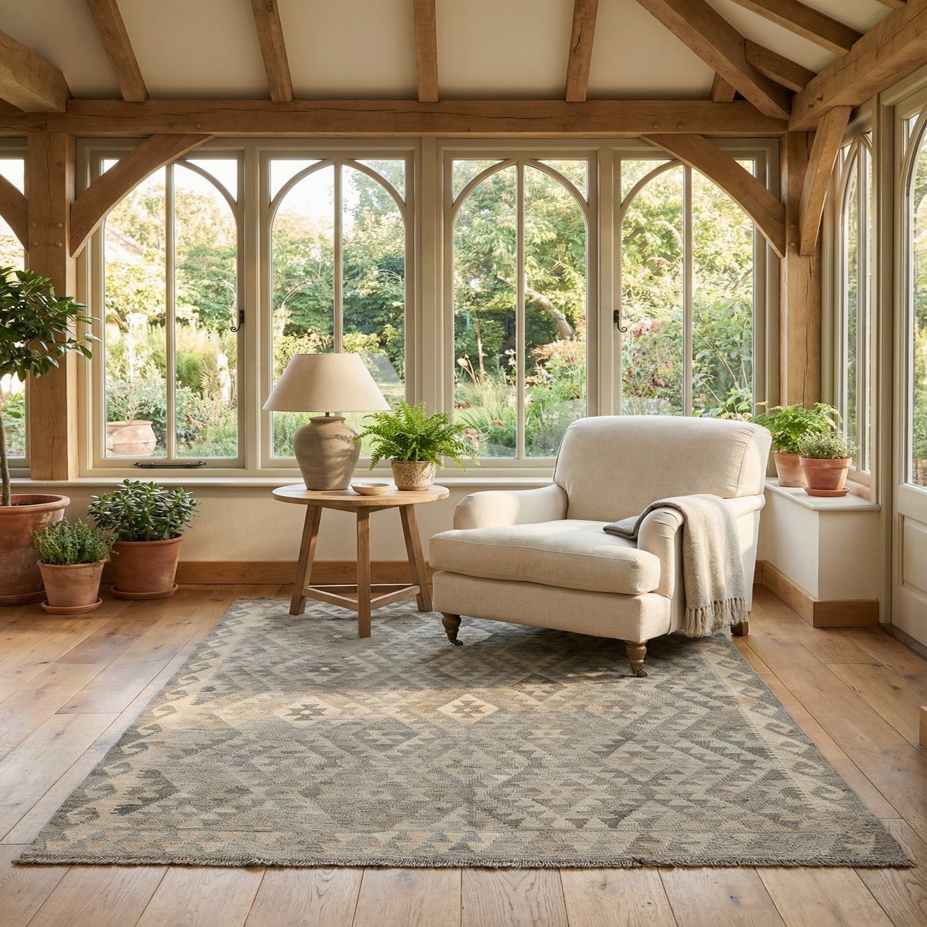 5' 3 x 6' 7 Hand Woven Kilim Maymana Wool Rug