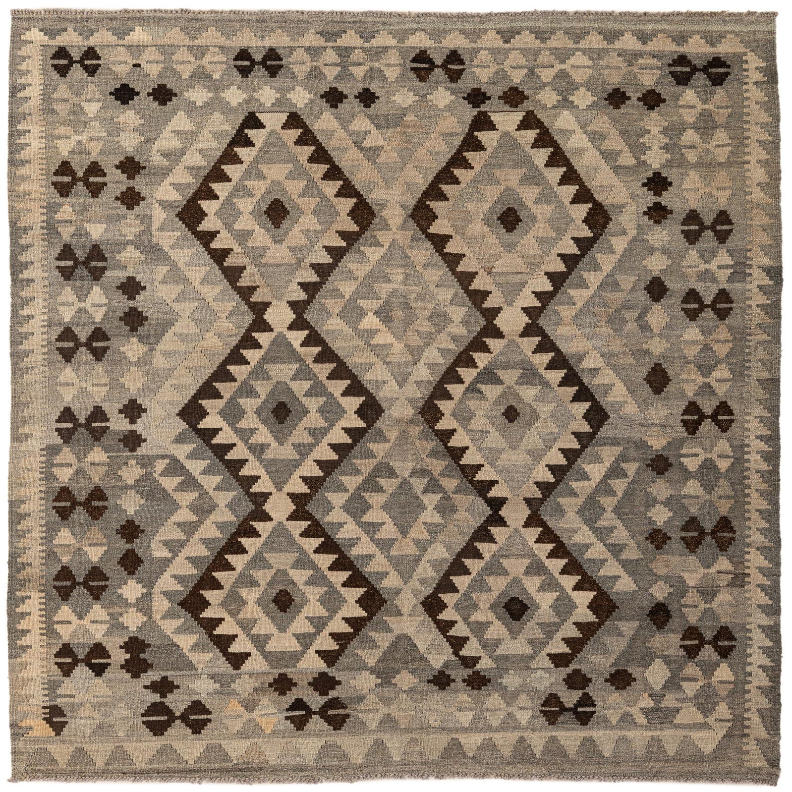 5' 2 x 6' 5 Hand Woven Kilim Maymana Wool Rug