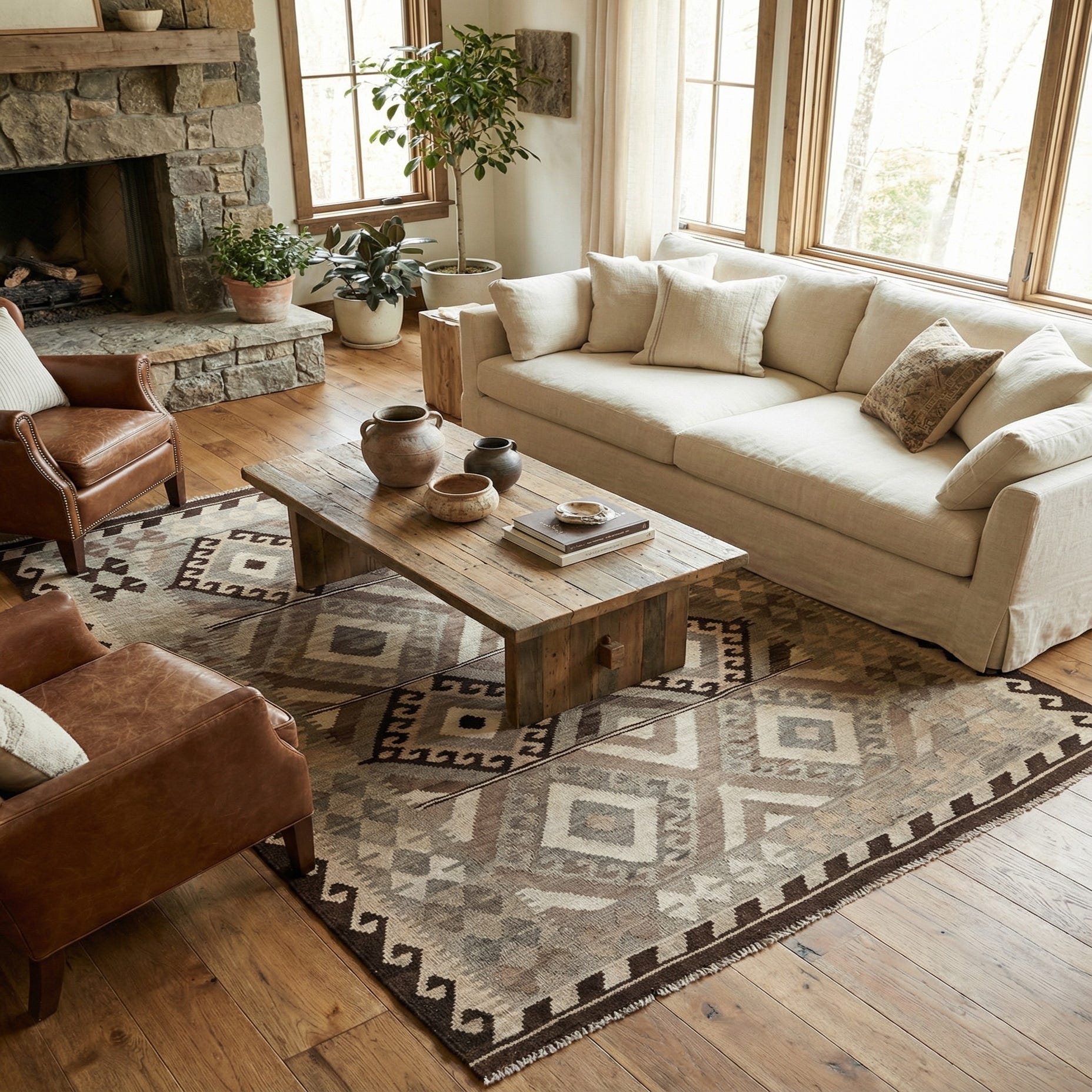 5' 2 x 6' 9 Hand Woven Kilim Maymana Wool Rug