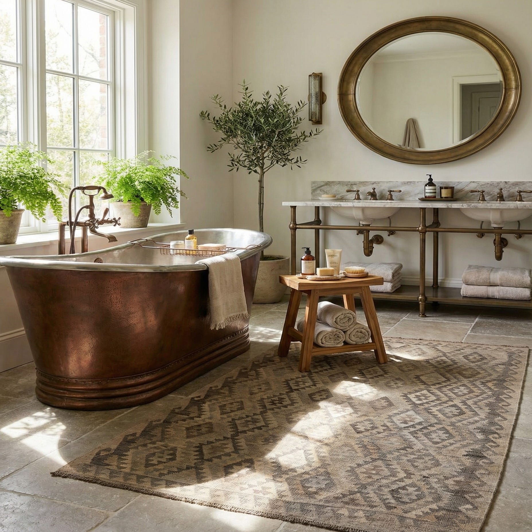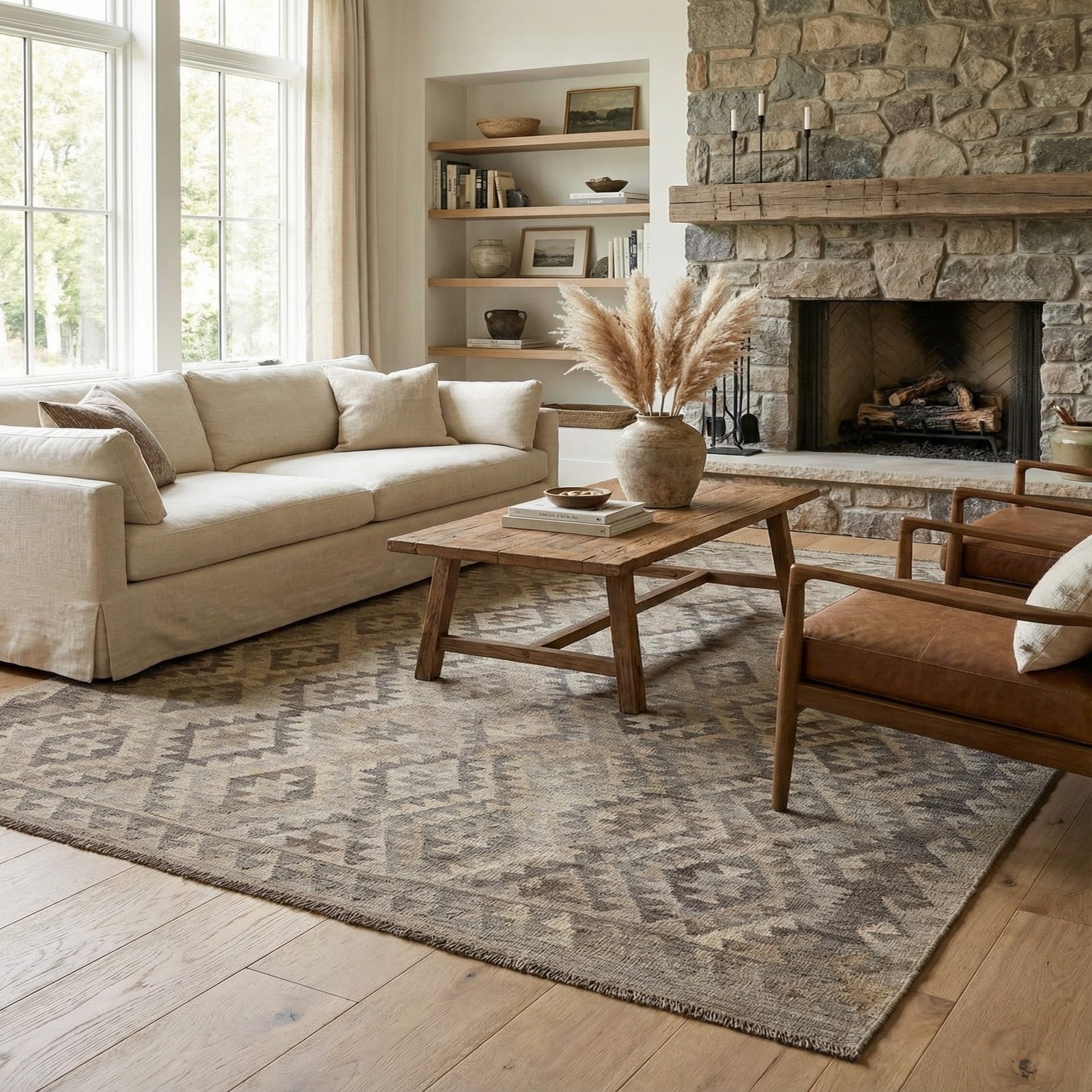 5' 3 x 6' 11 Hand Woven Kilim Maymana Wool Rug