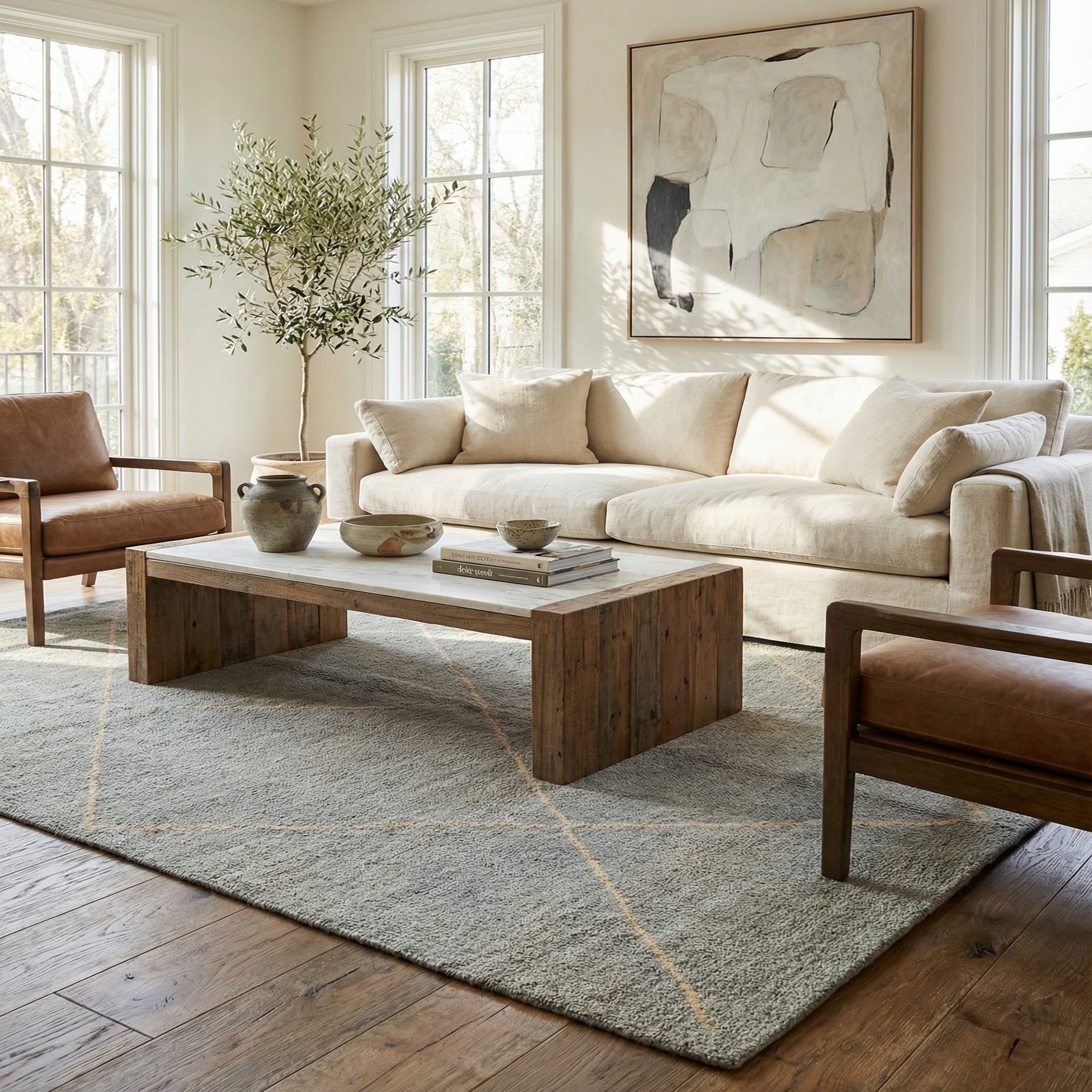 Primary color is Gray. Colors in this rug include: Gray, Cream.