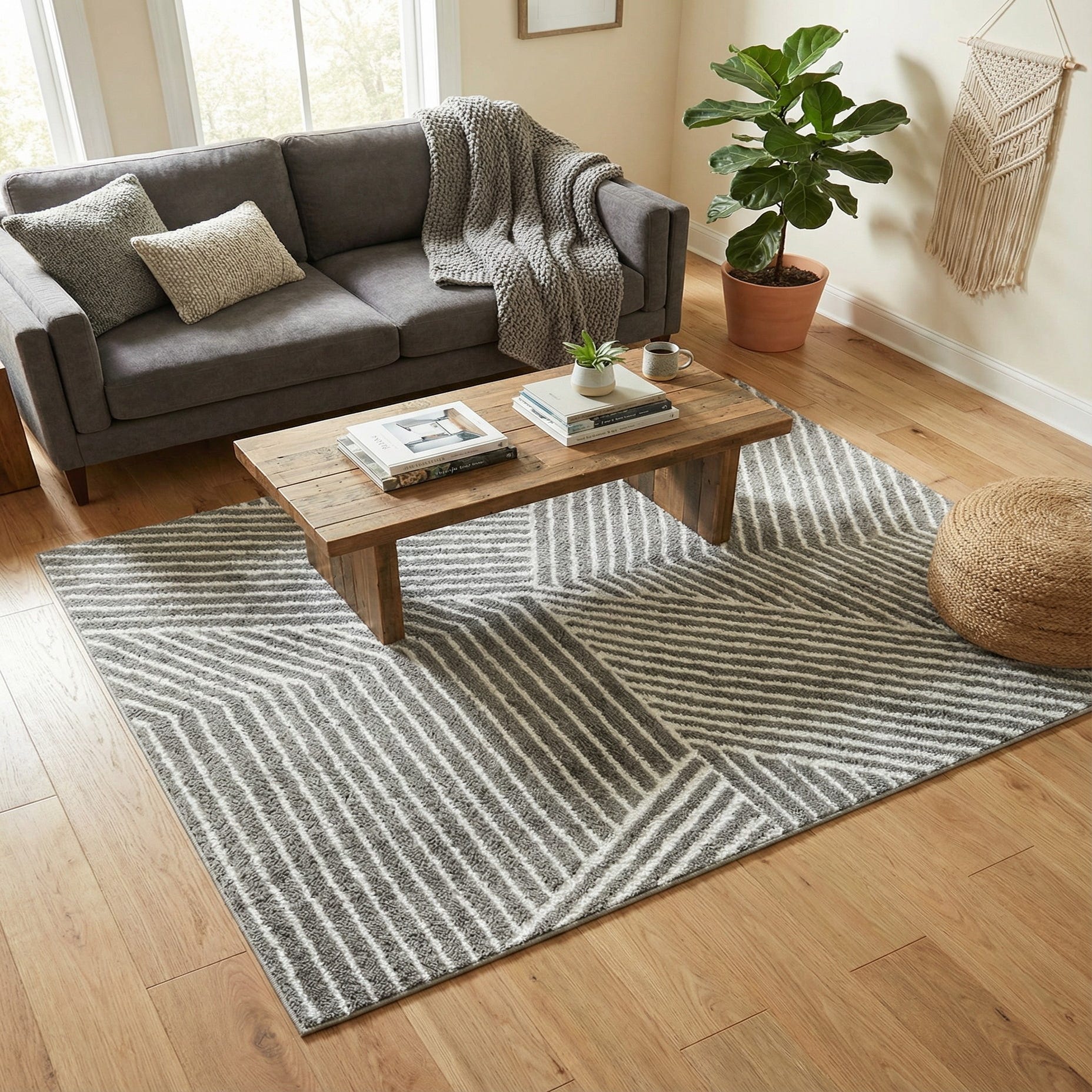 Primary color is Gray. Colors in this rug include: Gray, Ivory.