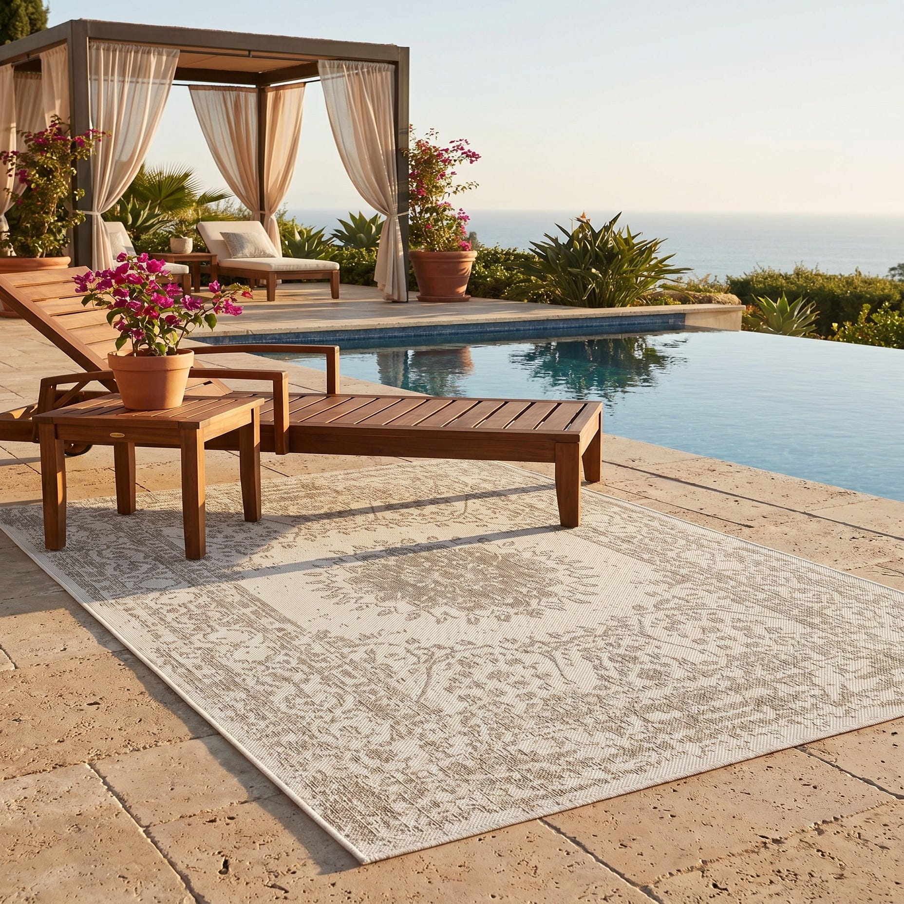 5' 3 x 7' Easy-Clean Traditional Indoor / Outdoor Rug